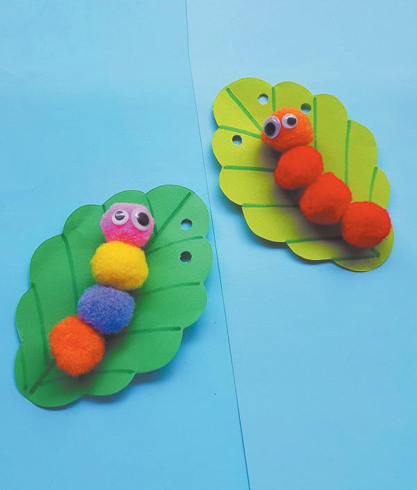The beautiful butterflies we see fluttering around spring flowers develop from certain types of caterpillars. Read a book with your kids about how that happens, then help them create their own caterpillar from colorful pom poms. Besides pom poms, all you need is green craft paper for the leaves, small googly eyes, scissors, glue, and a hole punch – to make it look like the caterpillars are eating the leaves. Draw your own leaf freehand, or download a free template and see complete instructions at: https://www.mommymadethat.com/pom-pom-caterpillar-craft/
