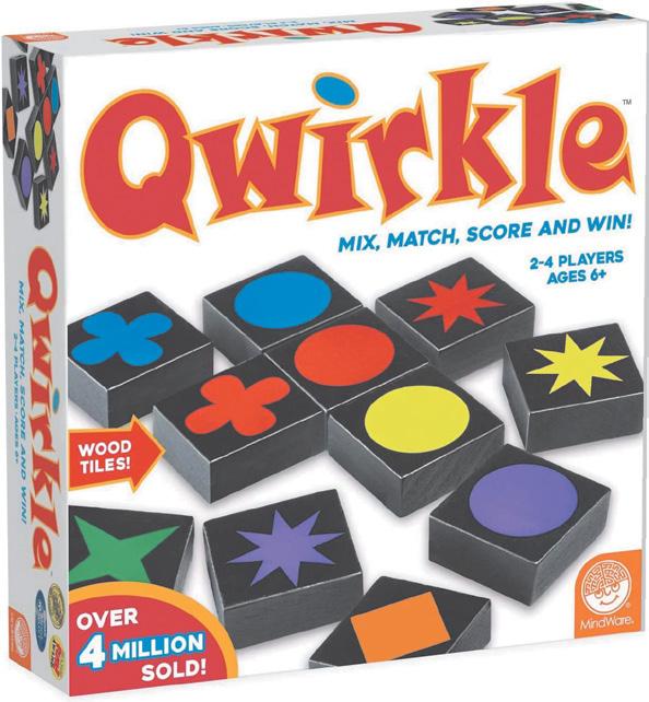 In this game, wooden tiles with different shapes in different colors are used to build lines by matching the tiles based on either color or shape, and scoring points by doing so. Allows young children and older individuals alike to develop and hone spacial recognition, planning, and problem-solving skills. For 2-4 players, ages 6 and up. (by MindWare, Amazon, $24.99)