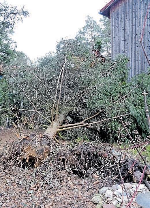 Glücklicherweise fiel der Baum, ohne Schaden am Haus zu verursachen. Für den Fall der Fälle sollte man aber abgesichert sein. Foto: Agentur LMZ