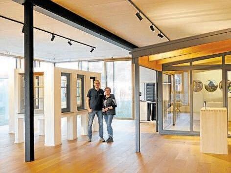 meter großen Showroom verwandelt. Helle Räume eine moderne Pfosten-Riegel-Fassade und die durchdachte Gestaltung schaffen eine warme, wohnliche Atmosphäre „Jedes Produkt ist im Detail anders, aber in Summe stimmig“, sagt Christoph Knoll. Die Ausstellung zeigt, was die Schreinerei Knoll ausmacht: Wintergärten und Terrassenüberdachungen, Haus- und Zimmertüren, Böden, Decken, Möbel, Küchen, Fenster und Beschattungssysteme – hochwertige Handwerkskunst in je-