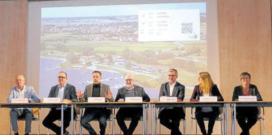 Professor Dr. Stefan Peiffer (Universität Bayreuth), Landrat Manuel Westphal, Thomas Keller (Leiter Wasserwirtschaftsamt), MdL Helmut Schnotz, Bürgermeister Karl-Heinz Fitz, Gabriele Trommer (Wasserwirtschaftsamt) und die Leiterin der Seemeisterstelle Schlungenhof Helga Pfitzinger-Schiele (von links) berichteten über die Ergebnisse der fünfstündigen Fachtagung. Foto: Jessica Frank