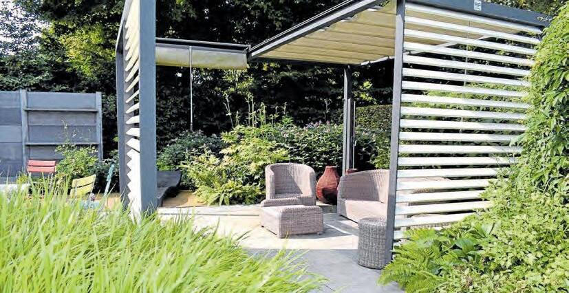 Entspannung entsteht längst nicht nur durch gemütliche Liegen, Stühle oder Bänke, das gesamte Raumgefühl ist wichtig für erholsame Auszeiten im eigenen Grün“, betont Uschi App vom BGL. Zuallererst braucht es Privatsphäre Niemand möchte sich wie auf dem Präsentierteller fühlen. Hier können grüne oder blühende Hecken Sichtschutz schaffen, halbhohe Stauden und Gräser das Gefühl von Abgeschiedenheit kreieren. Auch Mauern oder ein Gartenpavillon bieten Geborgenheit. Wichtig ist, dass der Raum nicht einengend wirkt und der Blick weiterhin schweifen kann.“