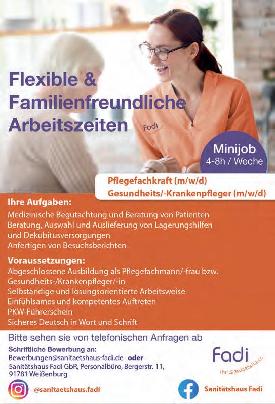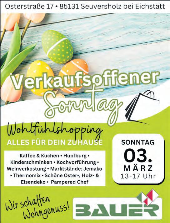 WIR SIND FÜR SIE DA 91781 Weißenburg Rothenburger Straße 14 Tel.: 09141 8593-0 Fax: 09141 8593-20 Redaktion ✆ 09141 8593-21 Kleinanzeigen ✆ 09141 8593-12/-14 Zustellung ✆ 0151 62825335 Falls Sie unsere Zeitung nicht mehr erhalten möchten, bitten wir Sie, eine E-Mail an zustellung@wochenzeitung.de zusenden und einen Aufkleber mit dem Hinweis „Bitte keine kostenlosen Zeitungen“ am Briefkasten anzubringen. Mehr Infos: werbung-im-briefkasten.de Ab dem 1. März 2024 sind wir wieder für Sie da und freuen uns auf Ihren Besuch! Seestraße 34, 91738 Langlau, Telefon 09834 - 9758179 03.03.2024|13–17Uhr|BechhofenundAuhausen SCHAUSONNTAG Mehrfamilienhaus GRÜNQuartier Eisenbahnstraße10