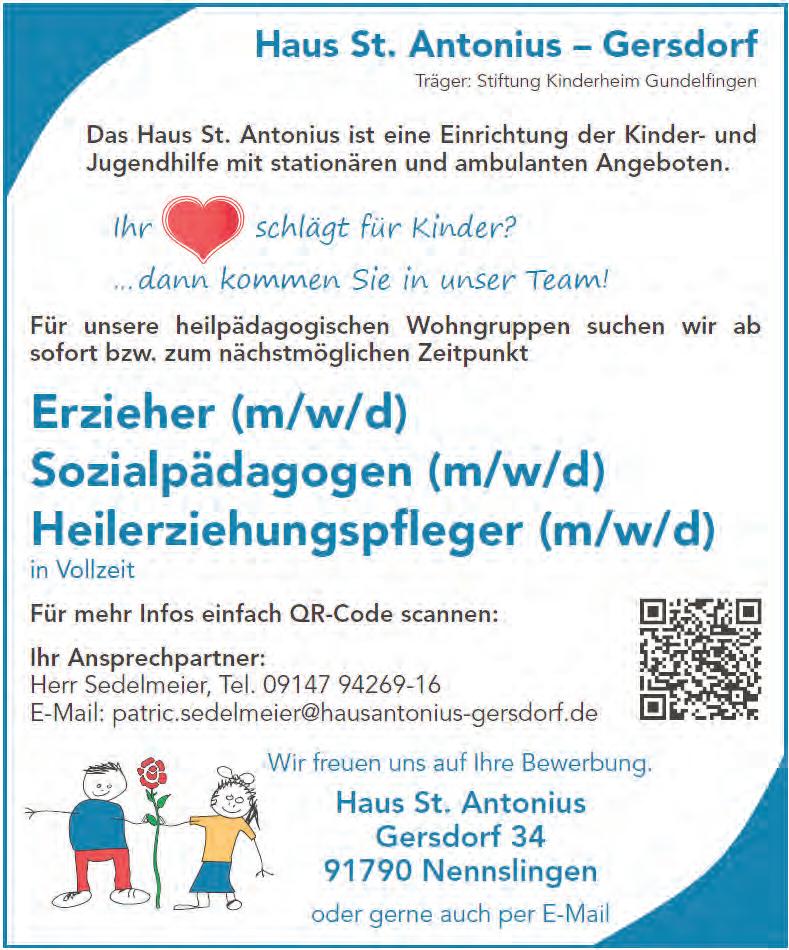 A UNSER TEAM IST FÜR SIE D nichtnurnachderKüchenmontage,sondernauchmontags Seenland-Küchen persönlichundnah Öffnungszeiten:Mo.-Fr.9.30-12.00&13.00-17.00Uhr·Samstag9.00-12.00Uhr gerneauchnachindividuellerTerminvereinbarung 91792Ellingen·PleinfelderStraße2 Telefon:09141/9978828·info@seenland-kuechen.de·www.seenland-kuechen.de Seit 5 IhrkompeJahrenwenntenterPartner, esum IhreKüchegeht! Öff it M F 9 3 •Riesenauswahlvonder Küchenzeilebiszurhochwertigen Einbauküche •IndividuelleBeratungstermineinpersönlicher Atmosphäre •KompletteBaubetreuung •Präziseundkompetente Montagedurcheigene Monteure •SchlankinderStruktur undimPreis www.logopädie-weissenburg.de Sprache und Sprechen Stimme und Schlucken Auditive Wahrnehmung Lesen und Schreiben Konzentration Entwicklungsförderung Logo pä die Praxi sf ür Kiesewetter Lerntherapie und Kindesentwicklung Maria Kiesewetter Tel. 09141·873898 Judengasse 20 91781 Weißenburg Baustellenbesichtigung info@beyhl.de Sonntag, 10.03.2024 oder nach Vereinbarung „Seeblick Absberg“ von 13:00 - 17:00 Uhr Eigentumswohnanlage Am Grausenbuck 7 09832/7070 www.beyhl.de WIR SIND FÜR SIE DA 91781 Weißenburg Rothenburger Straße 14 Tel.: 09141 8593-0 Fax: 09141 8593-20 Redaktion ✆ 09141 8593-21 Kleinanzeigen ✆ 09141 8593-12/-14 Zustellung ✆ 0151 62825335 Falls Sie unsere Zeitung nicht mehr erhalten möchten, bitten wir Sie, eine E-Mail an zustellung@wochenzeitung.de zusenden und einen Aufkleber mit dem Hinweis „Bitte keine kostenlosen Zeitungen“ am Briefkasten anzubringen. Mehr Infos: werbung-im-briefkasten.de
