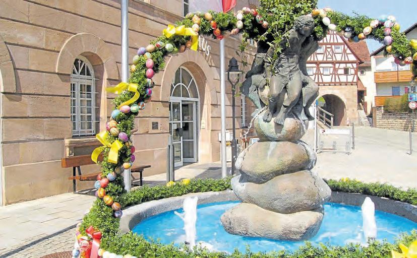 Traditionell wird am Ostersonntag, 31 März 2024 gegen 11.15 Uhr in Pleinfeld der Müllerbrunnen am Rathaus in Betrieb genommen. Erster BürgermeisterStefan Frühwald wird den Befehl „Wasser marsch geben, umrahmt von der Pleinfelder Blasmusik. Für die kleinen Gäste gibt es eine süße Überraschung. Foto: Kultur- u. Touristinformation Pleinfeld