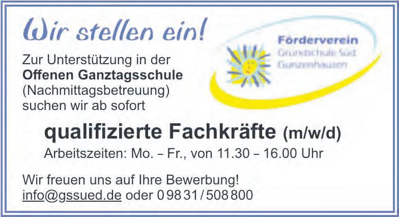 bucht werden. Alle Angebote umfassen dabei eine Dauer von mindestens sechs Stunden täglich und erstrecken sich über mindestens eine Woche Die Broschüre liegt im Landratsamt zur Abholung bereit. Außerdem finden Eltern die Angebote auf der Homepage des Landkreises WeißenburgGunzenhausen unter www altmuehlfranken.de/ferienbetre uung.