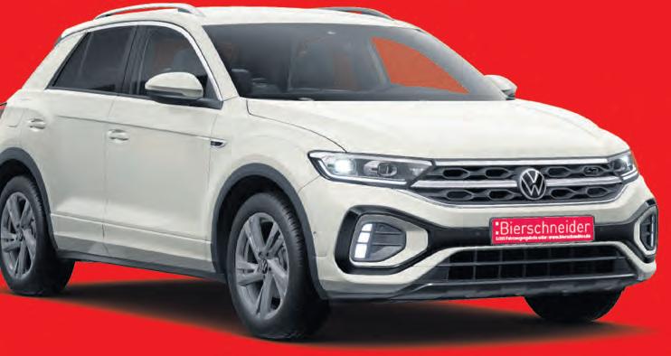 VWT-RocLife1.0TSIOPF85kW(116PS)6-Gang Kraftstoffverbrauch(kombiniert):5,7l/100km;CO2-Emissionen(kombiniert):129g/km;CO2-Klasse:D Telefonschnittstelle,Radio„Composition“,App-ConnectfürAppleCarPlayundAndroidAuto,Digitaler RadioempfangDAB+,DigitalCockpit,Regensensor,LED-Scheinwerfer,Leichtmetallräder„Chester“ 6,5Jx16,Spurhalteassistent,Notbremsassistent,„ParkAssist“inkl.Einparkhilfe,Multifunktionslenkradin Leder,Komfortsitzevorn,Klimaanlage,Dachrelingschwarzuvm. 5.000 sofortverfügbare Fahrzeugangeboteund günstige Vorführwagen unter www.bierschneider.de