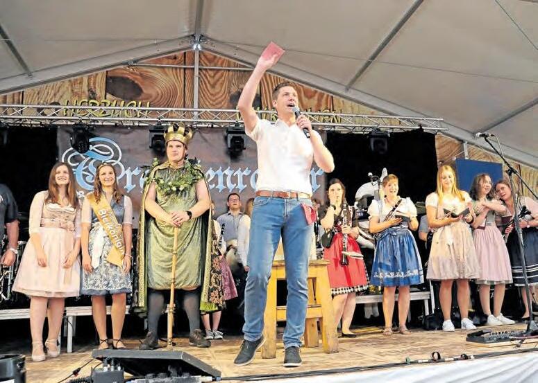 Uhr zum Standkonzert der Pleinfelder Blasmusik vor dem Rathaus eingeladen mit anschließendem Gambrinuszug zum Festzelt. Um 19.30 Uhr erfolgt dann die offizielle Eröffnung mit Bieranstich durch Bürgermeister Stefan Frühwald. Speziell für Senioren findet am Samstag der Seniorennachmittag der Marktgemeinde Pleinfeld im Festzelt statt, musikalisch umrahmt durch die Pleinfelder Blasmusik. Abends gibt es im Zelt dann Alpenrock, Pop, Rock und Party mit CallMe“ Der Volksfestsonntag steht unter dem Motto „Tag der Ver-