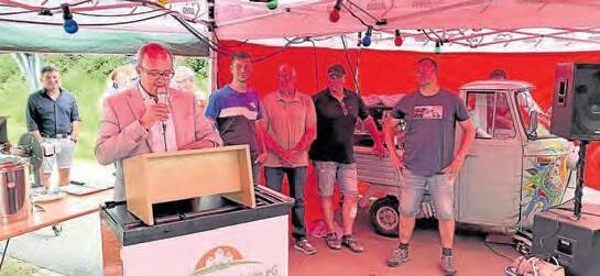 Seegmüller zeigte sich erleichtert, dass dieses arbeitsintensive Projekt Dankder guten Zusammenarbeit des Vorstands- und Aufsichtsrates in dieser Zeit umgesetzt werden konnte Im Namen seiner Vorstandskollegen Jürgen Bruderek, Matthias Lutz, Fabian Schmidt und Jonas Glungler, sowie den Mitgliedern des Aufsichtsrates Benjamin Reulein Jonathan Lutz, Philipp Härtlein, Jürgen Seegmüller, Sebastian Högner und Moritz Schneider bedankt er sich bei allen beteiligten Handwerksfirmen und Helfern sowie der Gemeinde Letztere hatte ein passendes Grundstück zum Erwerb angeboten. Ein super Finale Ich bin stolz auf die Jungs , gab Bürgermeisterin Feller den Dank zurück. Denn es müssten sich erst einmal Menschen finden,die in ihrer Freizeit so ein Projekt aufbauen und managen und damit für ihre Mitbürger diese Möglichkeit schaffen. Zu-