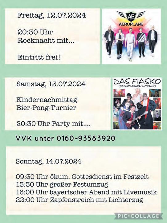 umfangreiches Rahmenprogramm gesorgt. Wie auch in den letzten Jahren wird an allen Kirchweihtagen die Festzeltbewirtung Albrecht aus Suffersheim bestens und vielseitig für die Verköstigung sorgen. Zur musikalischen Untermalung tragen verschiedene Besetzungen an allen vier Tagen bei. Neu in diesem Jahr ist die Band „Reloaded“, die am traditionell gut besuchten Samstag mit verschiedenen Genres speziell mit Cover Rock & Co einheizen wird.