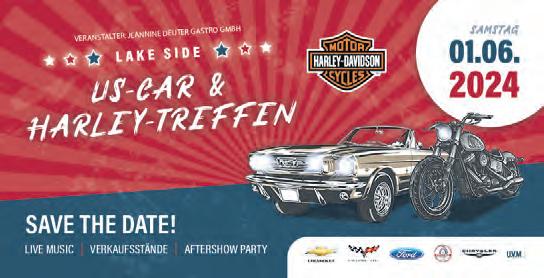 kühlem Bier Störzelbacher & Strings freuen sich auf ein fantastischesLive-Konzert und eine großartige Sommerstrandparty die man definitiv nicht verpassen darf! Weiter geht es mit dem USCar und Harley-Treffen am Samstag, 27. Juli Bereits in den vergangenen Jahren kamen zahlreiche Gäste in das Seezentrum Schlungenhof, um die rund 400 Fahrzeuge zu bestau-
