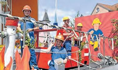 zug einen krönenden Abschluss Unter dem Motto Helden der Kindheit schlängelten sich die ideenreichen Wägen, Musikkapellen, Kutschen und Fußgruppen durch die Stadt. Jede Menge Menschen säumten bei großerHitze die Straßen und jubelten den Teilnehmern kräftig zu. Viele Idealisten hatten sich wieder mächtig ins Zeug gelegt, um das diesjährige Motto perfekt in Szene zu setzen. Erstmals wurde in diesem Jahr dazu aufgerufen, für den schönsten Wagen des Festzuges