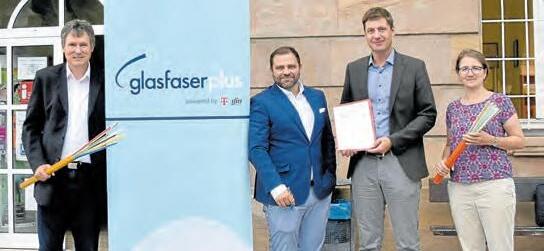 (v. l.) Freuen sich über die Zusammenarbeit: Markus Sand (Kommunalberater Glasfaser), Jan Svoboda (Kommunalberater Glasfaser), Stefan Frühwald (1 Bürgermeister) und Astrid Weiße (3. Bürgermeisterin). Foto: Brigitte Dorr