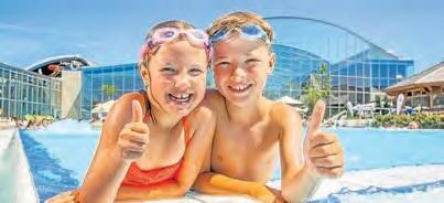 Welt zu einem traumhaften Urlaubsparadies für die ganze Familie Ein besonderes Highlight im weitläufigen Thermengarten ist die Hybridrutsche The Big Wave : Diese sorgt mit 45 km/ h Geschwindigkeit für gewaltig Adrenalin! Auf der sechsfach Mattenrutsche Rainbow Racer kann die ganze Familie unter freiem Himmel um die Wette rutschen. Ein fruchtiger Süd-