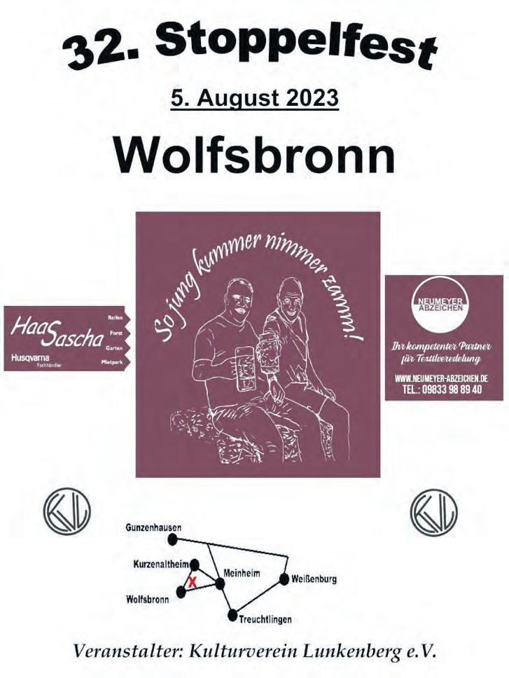 Kurzenaltheim wird am Samstag, 5. August, ab 19.00 Uhr, zum 32. Stoppelfest eingeladen. Lesen Sie mehr auf Seite 9 ALTMÜHLFRANKEN ALTMÜHLFRANKEN Nr. 31 · 52. Jahrg. · 2. August 2023 ☎ ANZEIGEN 0 91 41 / 85 93 – 12 REDAKTION 0 91 41 / 85 93 – 21 ✉ POST Rothenburger Straße 14 91781 Weißenburg E-MAIL anzeigen@wochenzeitung-online.de ☎ ZUSTELLUNG 0151 / 62 825 335 E-MAIL zustellung@wochenzeitung.de