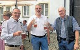 (v. l. n. r.:) Brauereichef Thomas Schneider erhielt großes Lob von Oberbürgermeister Jürgen Schröppel und Festwirt Gerhard Widmann, für das süffige Kirchweihbier