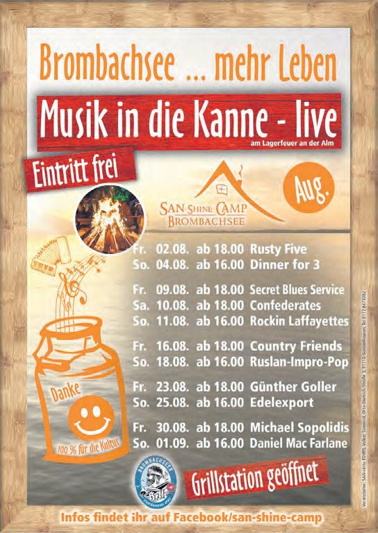 Ende für 22.00 Uhr geplant. Es werden keine Platzreservierungen vorgenommen. Bei schlechtem Wetter fällt das Konzert ersatzlos aus