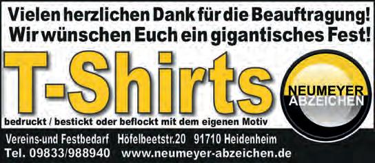 ein Auftritt des Trachtenvereins Thalmannsfeld. Der Sonntag, 4. August, beginnt um 10.00Uhr mit einem Gottesdienst. Im Anschluss wird zum Mittagessen sowie nachmittags zu Kaffee und Kuchen eingeladen. Abends ist wieder Party dieses Mal mit Brass Xperiment angesagt. An beiden Tagen gibt es auch eine Bar Für die Kinder wird eine Hüpfburg aufgestellt.
