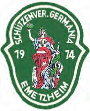 später wird das Sauschießen eingeführt. Die ehemalige Lagerhalle der Raiffeisengenossenschaft wird 1984 zum ersten Vereinsheim. Gleichzeitig wird zum zehnjährigen Jubiläum die neue Vereinsfahne eingeweiht. 1994 wird mit Norbert Kleemann erstmals ein Emetzheimer Gauschütze 1998 erwirbt die Stadt Weißenburg das Gebäude und überlässt es dem Schützenverein für 50 Jahre im Erbbaurecht. Groß gefeiert wird 1999 das 25-jährige Jubiläum. Passend zum Jubiläumsjahr 2024 kann mit Jörg Pfahler wieder ein Germania-Schütze den Titel des Stadtschützen erringen. Gleichzeitig überreicht OB Jürgen Schröppel Walter Gutmann die Klaus-Raab-Kette für seine langjährigen Verdienste Aktuell verfügt der Verein über 101 Mitglieder und ist durch gemeinsame Veranstaltungen mit der FFW fest im Dorf verankert. Das Schützenhaus ist zudem ein wichtiger Begegnungsort im Dorfleben.