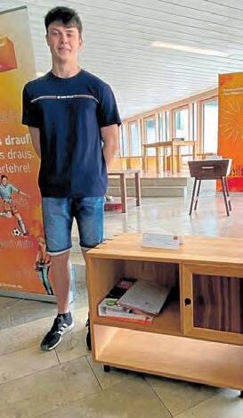 Nico Müller absolvierte seine Ausbildung bei der Schreinerei Wiedmann in Windsfeld. Sein Gesellenstück: Eine Anrichte aus Nussbaum. Foto: Brigitte Dorr