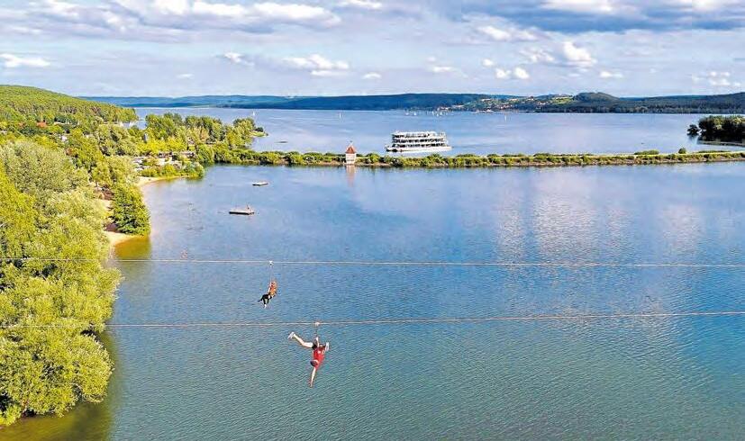 Der Abenteuerwald in Enderndorf macht es möglich und bietet mit der neuen doppelten Zipline mit 560 m Seillänge und einer Geschwindigkeit von bis zu 60 km/h Adrenalin pur Ideal ist die Kombination mit einer Schifffahrt auf dem Großen Brombachsee Entweder direkt in Enderndorf zusteigen oder einen Zwischenstopp zum Besuch des Klettergartens nutzen. Der einzigartige Trimaran verkehrt täglich von 9.30 Uhr bis 18.45 Uhr und bietet zujeder Tageszeit ein reichhaltiges Angebot an Speisen und Getränken.
