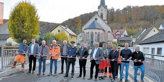 Windischhausen (do). Die Baumaßnahme war für die Windischhausener nicht ganz einfach. Doch nun konnte der Ersatzneubau der Straßenbrücke überdie Rohrach an der Kreisstraße WUG 5 in Windischhausen nach siebenmonatiger Bauzeit wieder für den Verkehr freigegeben werden. Landrat Manuel Westphal zeigte sich erfreut, dass der Brückenbau sogar einen Monat früheralsgeplant abgeschlossen werden konnte und dankte allen Beteiligten für die reibungslose und unkomplizierte Zusammenarbeit. Dass die Brücke komplett erneuert werden musste, sei aufgrund des baulichen Zustands und der geringen Breite dringend notwendig geworden. Diese sei in den 1950er Jahren gebaut worden und genügte nicht mehr den erhöhten Verkehrsbelastungen. Deshalb habe man im April mit dem Abbruch der alten Brücke begonnen. Nach anfänglichen Schwierigkeiten durch starke Niederschläge und schlechten Baugrund konnte die Maßnahme dann doch sehr zügig und im vorgesehenen Zeitplan und Kostenrahmen durchgeführt werden. Deshalb habe man dem Wunsch und der Notwendigkeit entsprochen, mit dem Ersatzneubau die Engstelle zu beseitigen und vor allem auch eine höhere Belastungsklasse und Nutzlast zu erreichen. Bei der neuen Brücke handelt es sich um eine Ein-Feld-