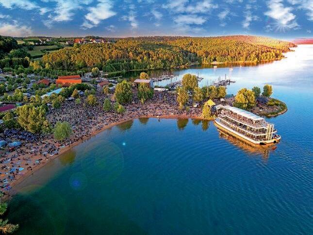 Ramsberg: Schifffahrtaufdem Brombachsee,mehrereAnlegestellen(bis01.11.,zusätzlichan Sonn-undFeiertagenbis29.11.)