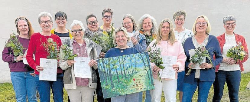 Die Absolventinnen des Hospizbegleiterkurses zusammen mit den Koordinatorinnen Sandra Meyer (Mitte) und Doris Holz (r.) Foto: Hospizverein Landkreis Weißenburg-Gunzenhausen e. V.