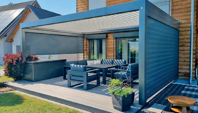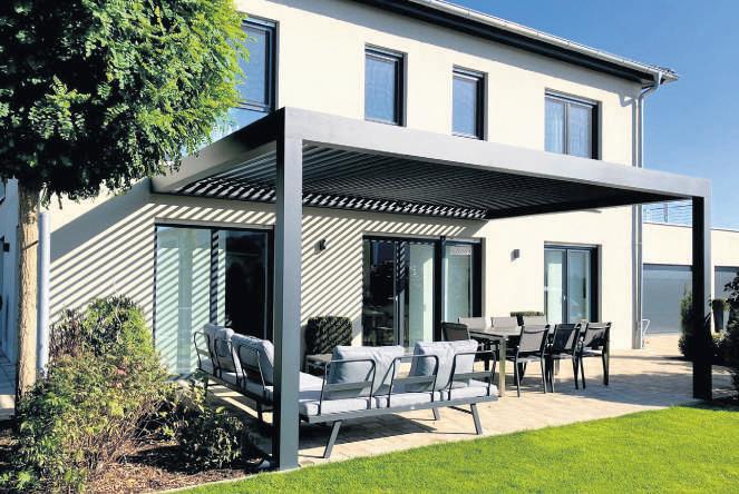 Lamellen-Überdachung mit integrierter LED-Beleuchtung