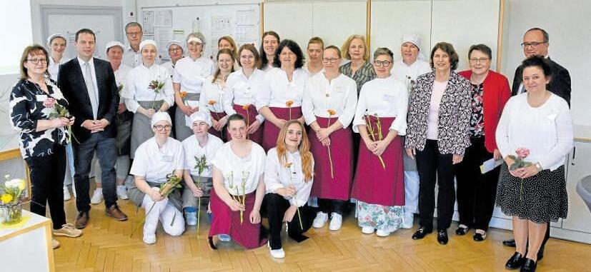 nem neuen System: Wir haben von Abend- auf Tagunterricht umgestellt, weshalb ich heute neben den vielen Ehrengästen allen voran Ministerialrätin Andrea Seidl aus dem für uns zuständigen Bayerischen Staatsministerium für Ernährung, Landwirtschaft, Forsten und Tourismus, auch unser aktuelles Semester an der Hauswirtschaftsschule begrüßen kann. Auch die Ministerialrätin bekräftigte in ihrem Grußwort die Bedeutung der Hauswirtschaft: „Mit den neuen Räumlichkeiten, der Schulküche und Lehrräume erhalten Sie liebe Studierenden, optimale Bedingungen zum Lernen und Wachsen. Ein besonderer Dank ging von den Rednern an alle Beteiligten: Lehrkräfte, Schulpersonal, Mitarbeitende des Landratsamts sowie Planer und Handwerker die gemeinsam das Projekt verwirklicht haben. Im Anschluss an die Grußworte stellten Andrea Fina und Renate Schwarz als Vertreterin der Landwirtschaftsschule die neue Küche und die moderne Technik vor Die Studierenden hatten – auch mit Unterstützung des Landrats und des Schulleiters – ein Flying Buffet vorbereitet. Die Gäste konnten also gleich erschmecken, welch tolle Leistungen in den neuen Küchenerbracht werden können.