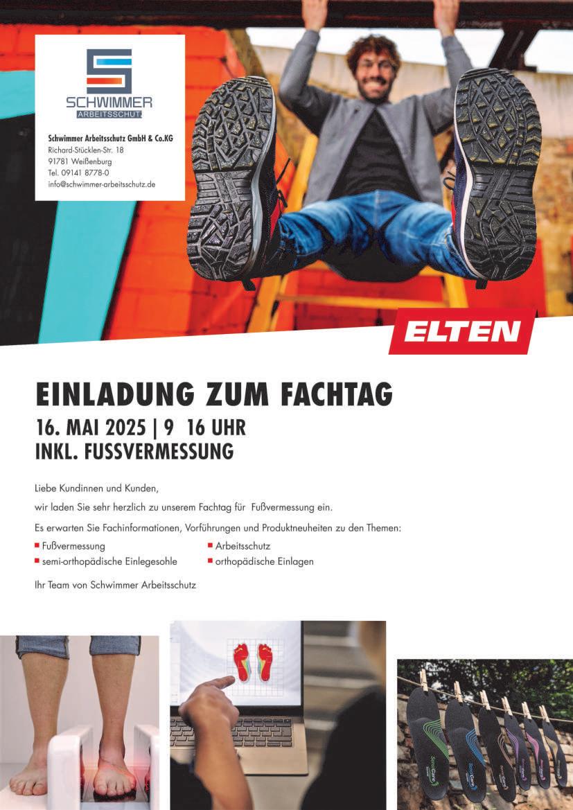 Die Firma Schwimmer Arbeitsschutz führt am Freitag den 16.05.2025, von 09.00 bis 16.00 Uhr, in Verbindung mit der Schuhfabrik van Elten eine Fußvermessung für Sicherheitsschuh Träger durch. Vor Ort ist ein Orthopädie Schuhmacher-Meister der Fa. Van Elten mit einem modernen 3D Scanner. Die Fußvermessung ist kostenlos.