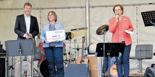 ka Steimle In ihrem Grußwort bedankte sich für die wohlwollenden Worte Ihr Dank galt auch dem Team und den Kollegen von der Zentrale „Zusammen sind wir stark!“ Nachdem 20 gemeinnützige Einrichtungen jeweils einen Scheck in Höhe von 1.000 Euro erhielten, wurde weiter gefeiert. Für die musikalische Umrahmung sorgten Drop the Blue“ und Marbel Field. Auch der Vorstandsvorsitzende und Hobbymusiker überraschte mit einer Einlage am Schlagzeug.