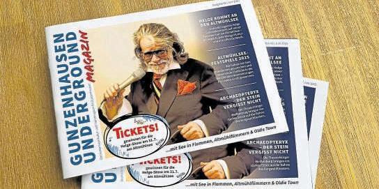 Theaterfans können sich auf ein Interview mit dem Intendanten der Altmühlsee-Festspiele in Muhr am See freuen. Und wen es im Sommer allgemein rausaus Gunzenhausen zieht, sollte auch übereinen Abstecher nach Weißenburg (Bergwaldtheater), nach Wolframs-Eschenbach (Oldietownfestival) oder an den Brombachsee (Wake & Shake Festival) nachdenken. Und damit ist nur ein Bruchteil dessen erwähnt, was die Leser im nächsten GUNZENHAUSEN UNDERGROUND Magazin erwartet Wie gewohnt hat die sechste Ausgabe eine Auflage von 9.000 Exemplaren und wird in KW 25 mit der WochenZeitung an die Haushalte mit derPLZ 91710 verteilt. Außerdem liegt das Magazin an vielen öffentlichen Orten im Stadtgebiet Gunzenhausen aus und kann online heruntergeladen werden.