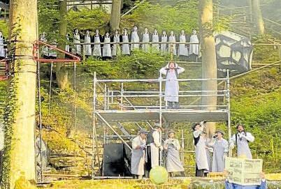 tegriert. Eindrucksvoll auch die farbenfrohen und spektakulären Kostüme sowie Soundtrack der lokalen Combo „Sutcliffe“ Rund 130 Mitwirkende davon rund 60 auf der Naturbühne sorgten für einen spannenden, mystischen, unterhaltsamen Abend.