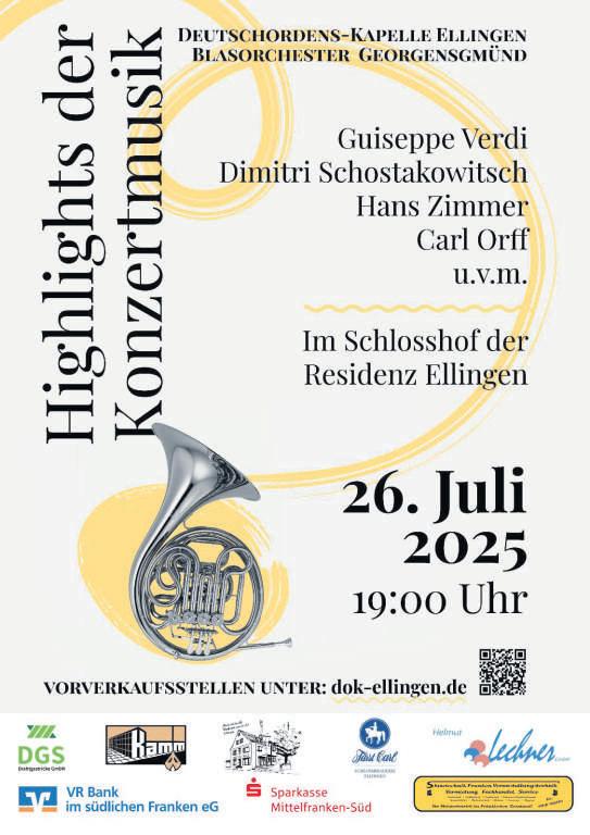 ... im Schlossgarten Pleinfeld Pleinfeld (red). Am Mittwoch, 16.07.2025, um 19.00 Uhr, findet wieder die Abendeinstimmung im Schlossgarten statt. Unter dem Motto: Fröhlich klingen unsere Lieder führt der Männergesangsverein Liederkranz 1899 Pleinfeld durch den Abend. Der Einritt ist frei, die Gäste werden mit einem Sektempfang begrüßt.