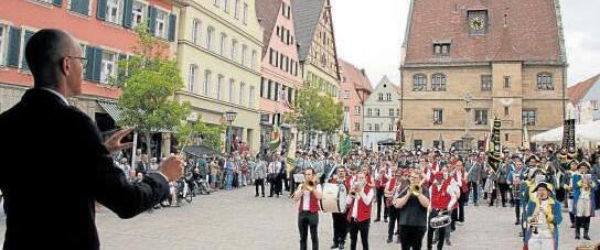 Weißenburg (ad). Die Reichsstädtische Schützenzeche lockte am Samstag wieder zahlreiche Gäste bei bestem Wetter auf den Marktplatz. Nach dem Einzug der Schützenabordnungen, die von der Stadtkapelle Weißenburg und der Deutschordens-Kapelle Ellingen begleitet wurden, lud Oberbürgermeister Jürgen Schröppel die Schützenmeister und -könige zum traditionellen Umtrunk ein. Eine Besonderheit gab es dieses Jahr, hatte doch eine Mitarbeiterin der Stadtverwaltung hochprozentigen Hochmoorgeist geordert, so dass die Gläser diese Mal nicht ganz