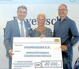 UGANDAKIDS Leiterin Hilda Ibba kommt nach Altmühlfranken Ellingen (red). Diese Fahrt hat sich gelohnt. Der Ellinger Christian Lojdl sowie Sabine Ritter beide Vorsitzende des Vereins UgandaKids e.V konnten Anfang Juli eine großzügige Fördersumme der Bayerischen Staatskanzlei entgegennehmen. Das innovative und vorbildliche Vereins-Konzept Mehr als Hilfe zur Selbsthilfe“ hat die Bayerische Staatskanzlei auf ganzer Linie überzeugt. Eric Beißwenger, Staatsminister für Internationales, überreichte den symbolischen Förderscheck über 49.999,-- Euro bei den Eine-Welt-Tagen“ in Augsburg. Es ist der höchstmögliche Betrag aus dem Förderpro-
