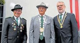 HSG-Schützenmeister Jörg Raab mit dem neuen Träger der Klaus-RaabKette, Hermann Schwenk, und OB Jürgen Schröppel Fotos: Amadeus Meyer