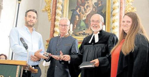 Pfarrer Hans Rohmer und Bürgermeister Manfred Schuster freuten sich beim feierlichen Einweihungsgottesdienst über das gelungene Ergebnis und dankten allen Beteiligten.