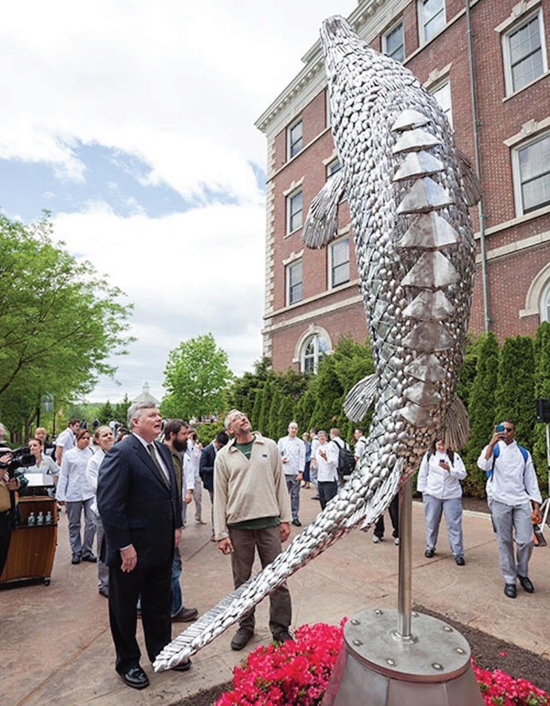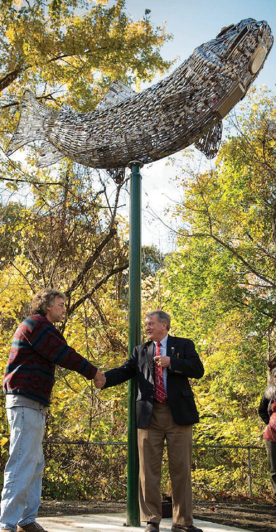 “Brookie,” one of Sendelbach’s award-winning sculptures pays tribute to Greenfield’s historical significance as the site of the first cutlery factory in the United States while acknowledging the ecological improvement of the Green River.