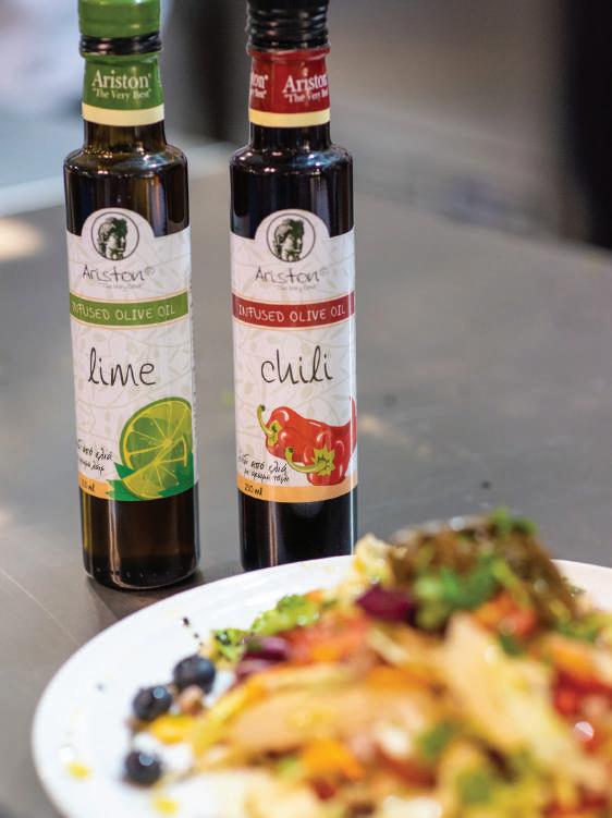 Ariston’s global reach reflects its universal appeal, with distribution in the Middle East, including the U.A.E. and Saudi Arabia. In Europe, their products grace Greece, from resorts across the Greek Islands to Michelinstarred chef Lefteris Lazarou’s Varoulko Seaside in Piraeus, Athens. Lazarou, so enamored with Ariston’s offerings, incorporated them into the first-class menu for Aegean Airlines and teaches with them at the Culinary Institute of Greece and the Culinary Institute of America. What makes Ariston Specialties truly compelling is the story behind the products. This isn’t a faceless corporation churning out goods—it’s a company rooted in tradition, with a deep respect for the land and the people who cultivate it. Their offerings reflect a dedication to authenticity, from the familyowned groves in Greece to the careful selection process that ensures only the finest ingredients make the cut. This authenticity and creativity matter. They’re the difference between a meal that’s merely sustenance and one that tells a story, connecting you to a place and a culture thousands of miles away.