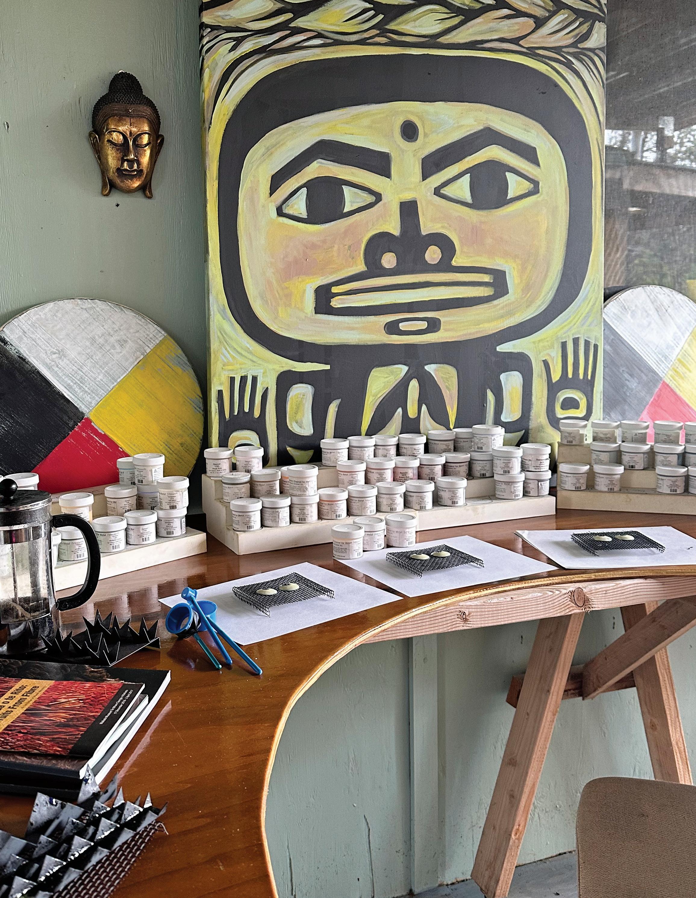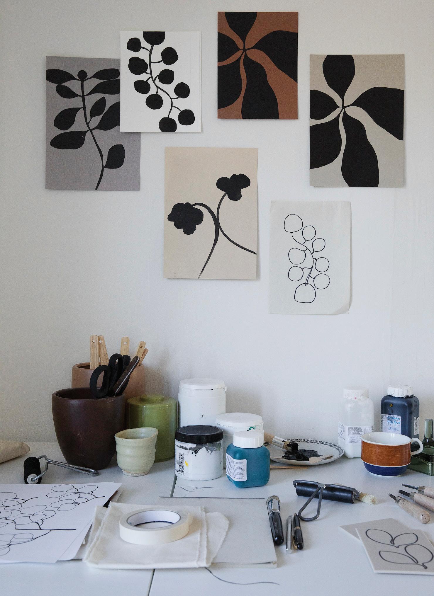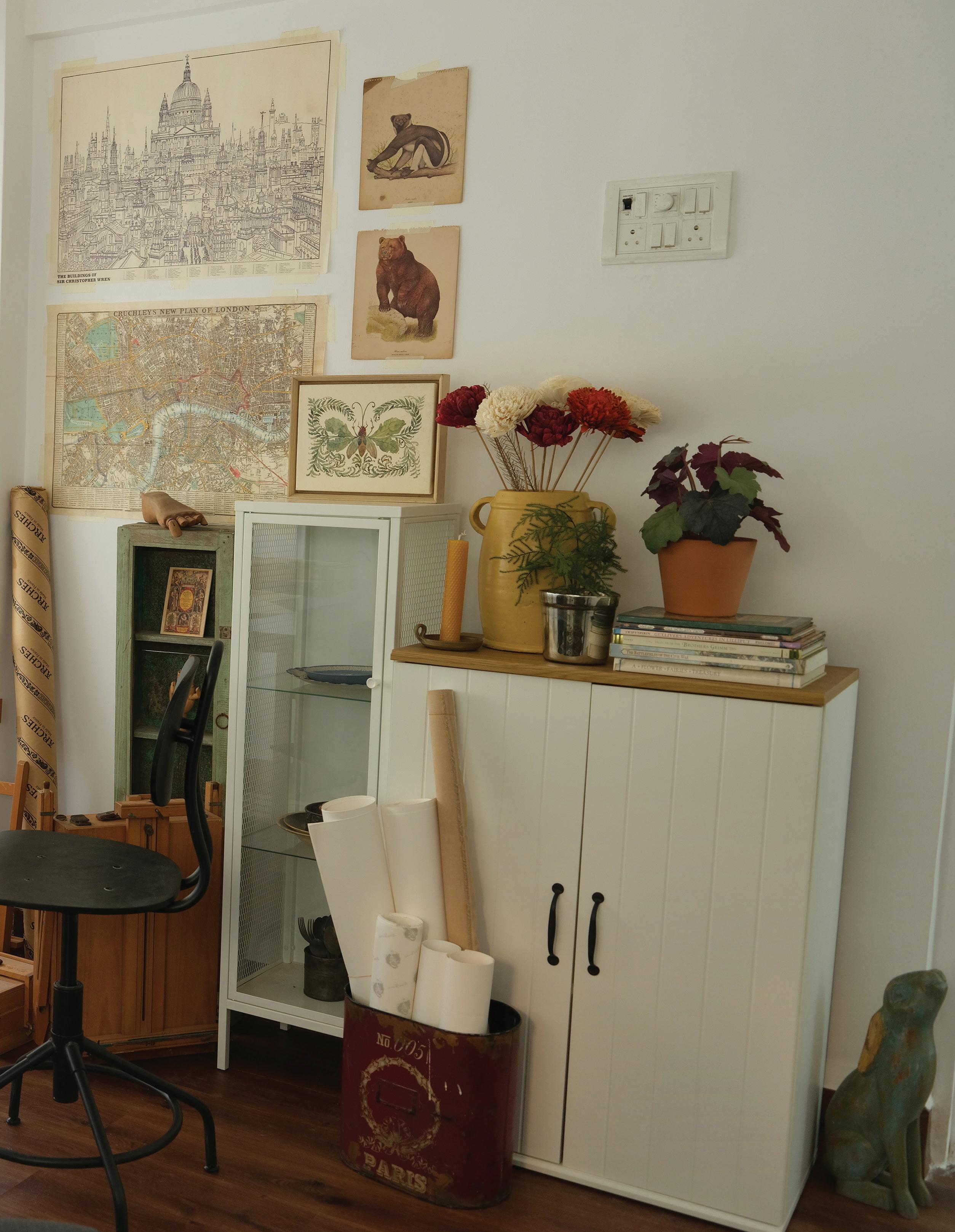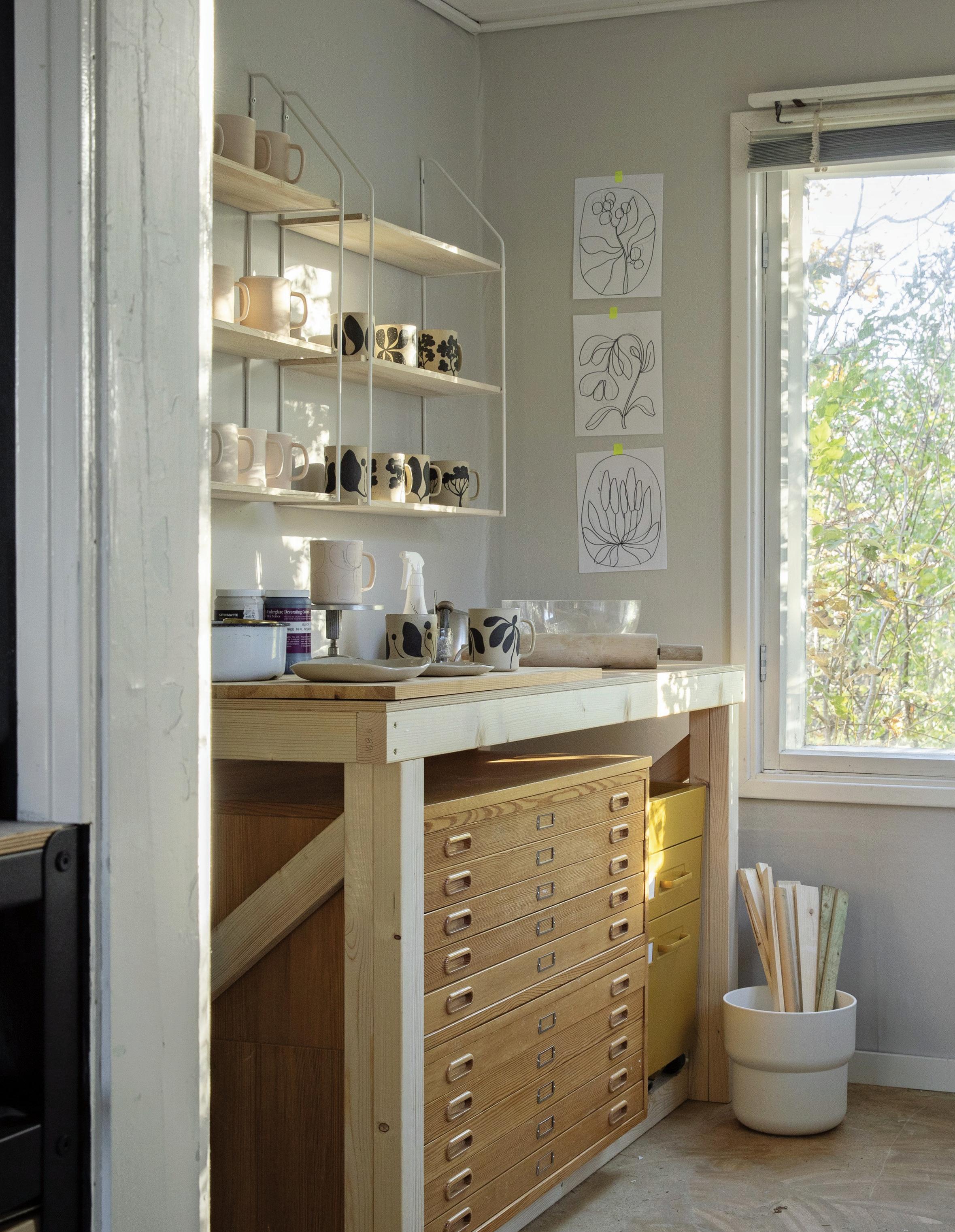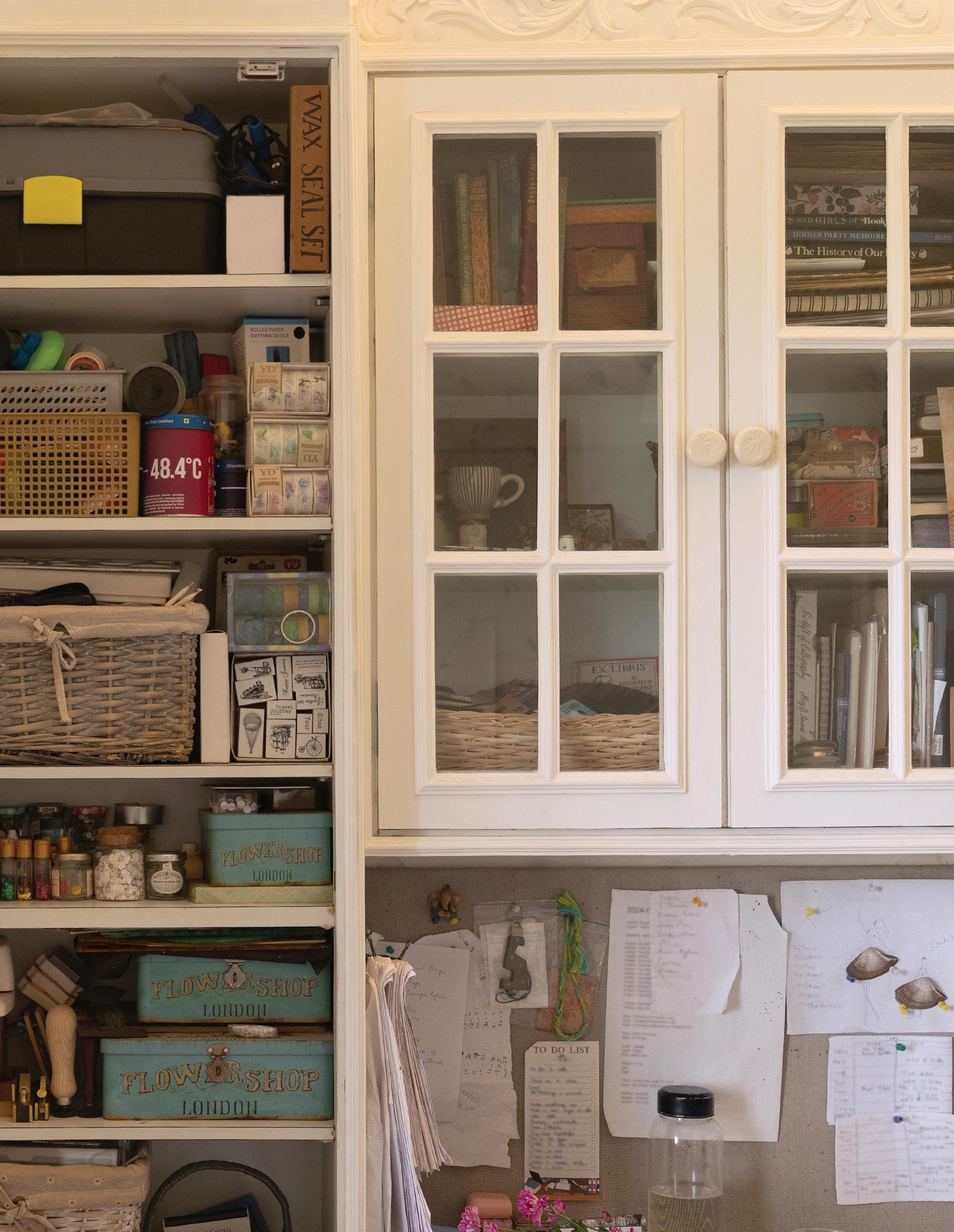 feel like my ever-growing, dense, and allencompassing wall displays give me the opportunity to reflect on where I started as an artist, where I am now with my work, and how I plan to evolve with my practice going forward. I know I can make my work anywhere, even on my kitchen table if that’s the only space I have available to me. I also know that having the space where I can be surrounded by my memories is one of the most inspiring ways to work, because it is a beautiful reminder of what brought me to this exact place in time. Most importantly, I know if the studio had to close up shop tomorrow, all of this creative energy comes with me, forever and always, in my heart and in my mind. In the sketchbooks balanced on my lap as I draw, and it lives on in the dusty boxes of collected treasures in attics far and wide that I’ll likely never make it back to.