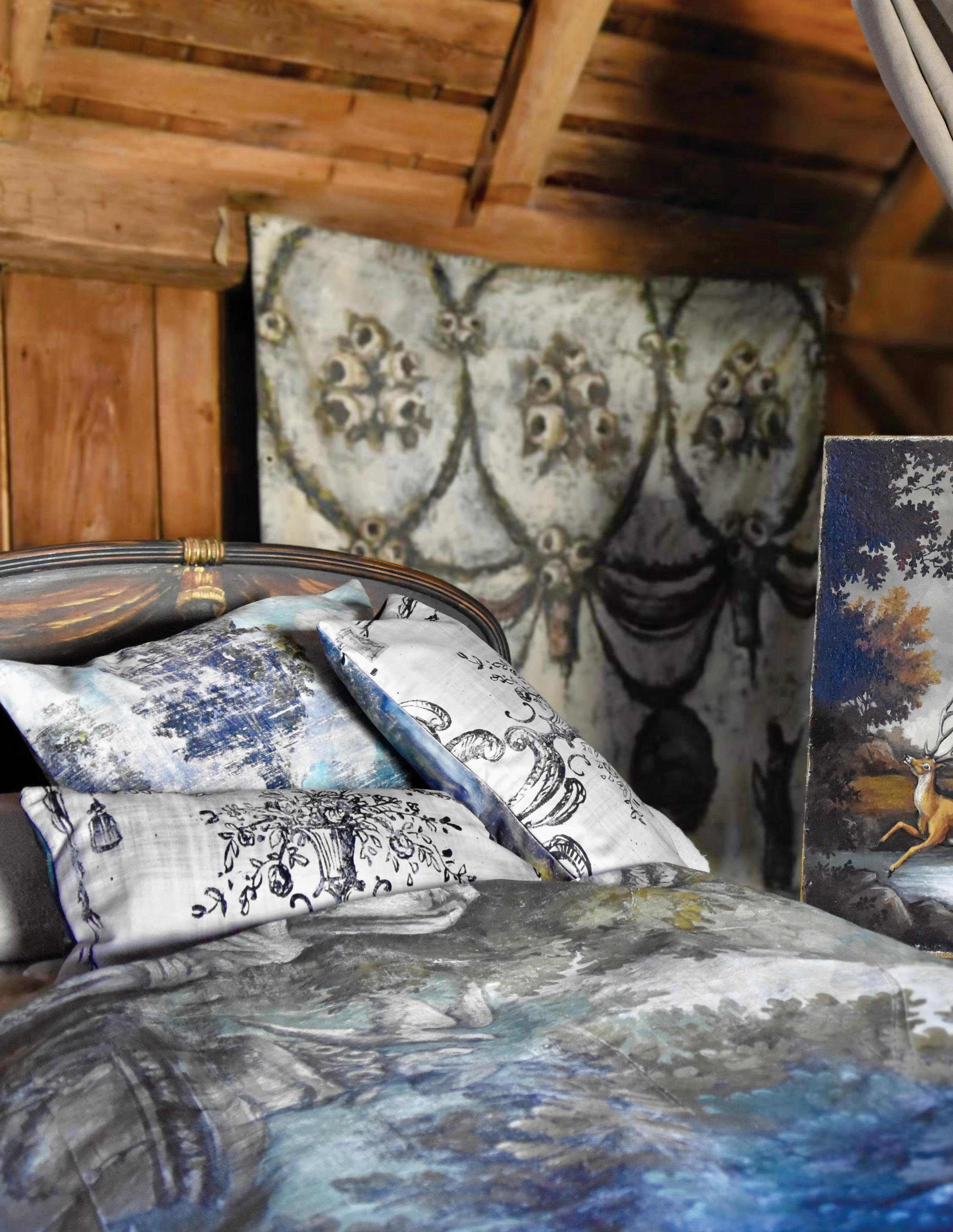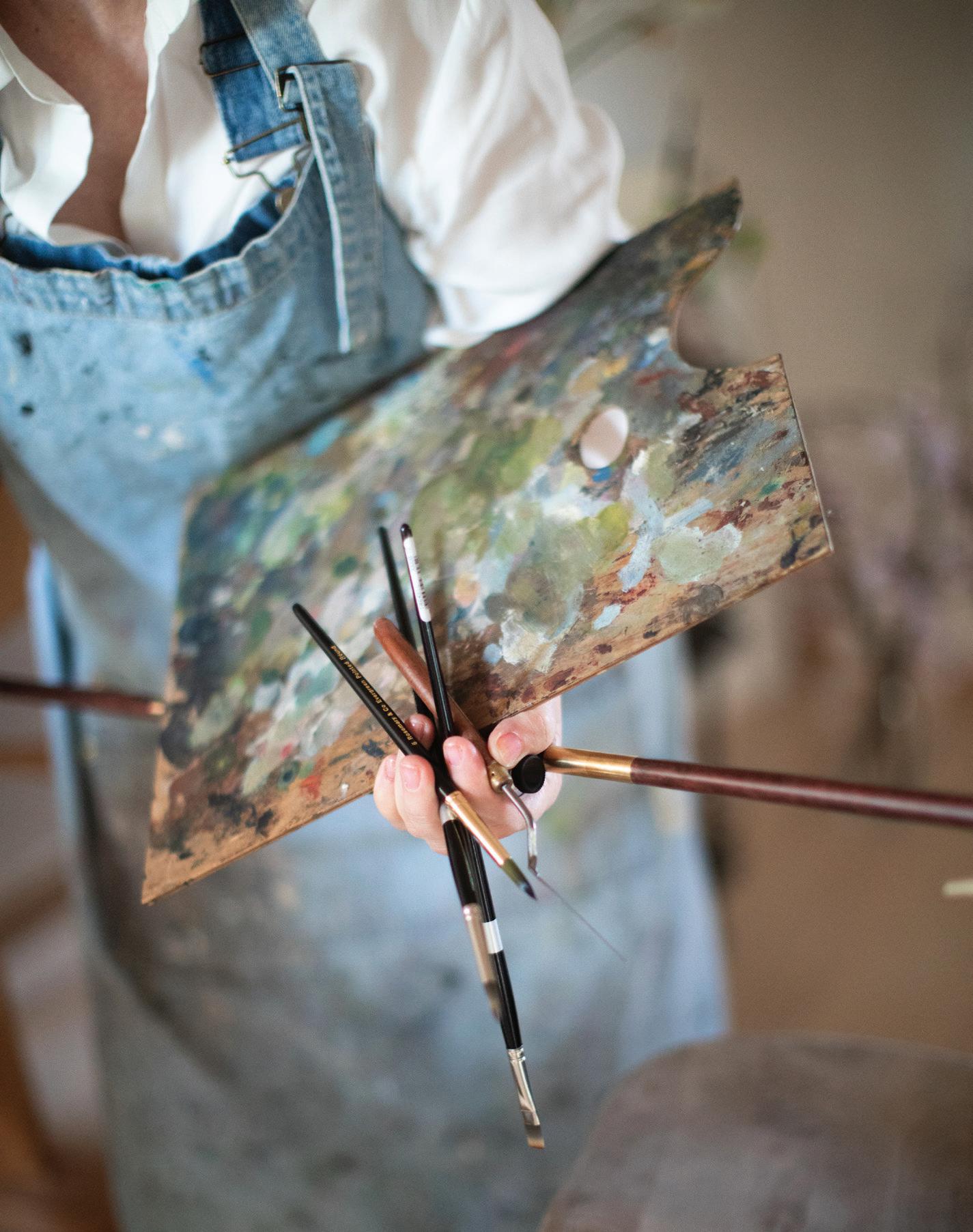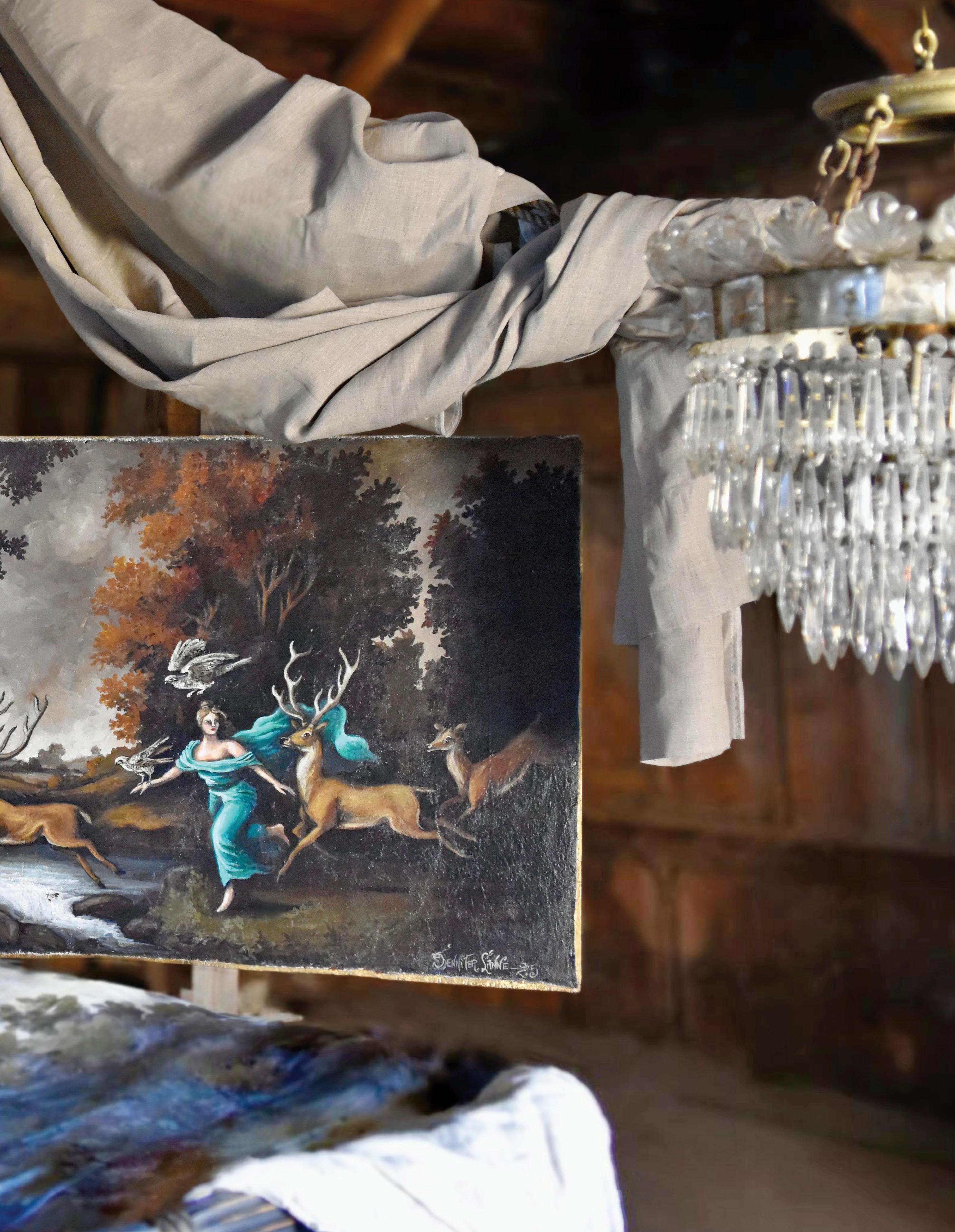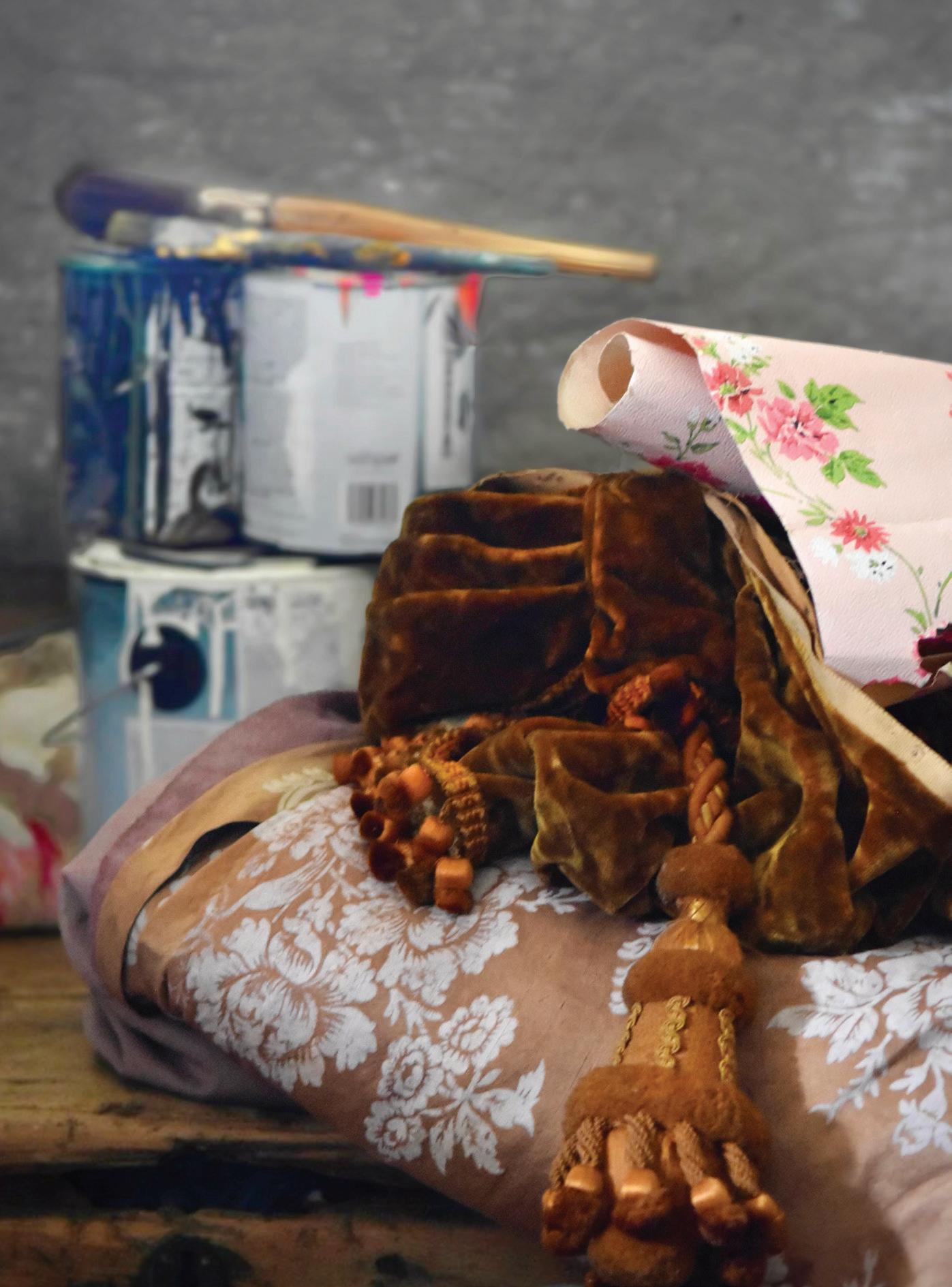 JENNIFER LANNE’s art captures the charm of heirloom sensibilities through evocative imagery. Her ephemeral vignettes showcase romantic decay, fashioned with large-scale painted backdrops, storied florals, heritageinspired landscapes, and exclusive home décor. Rich textures and muted palettes meld together in dreamscape pairings. Whether in the exterior world or the peripheries of her studio, Jennifer’s art and displays create delicate, yet dramatic glimpses into expressive, artfully-tattered nostalgia.