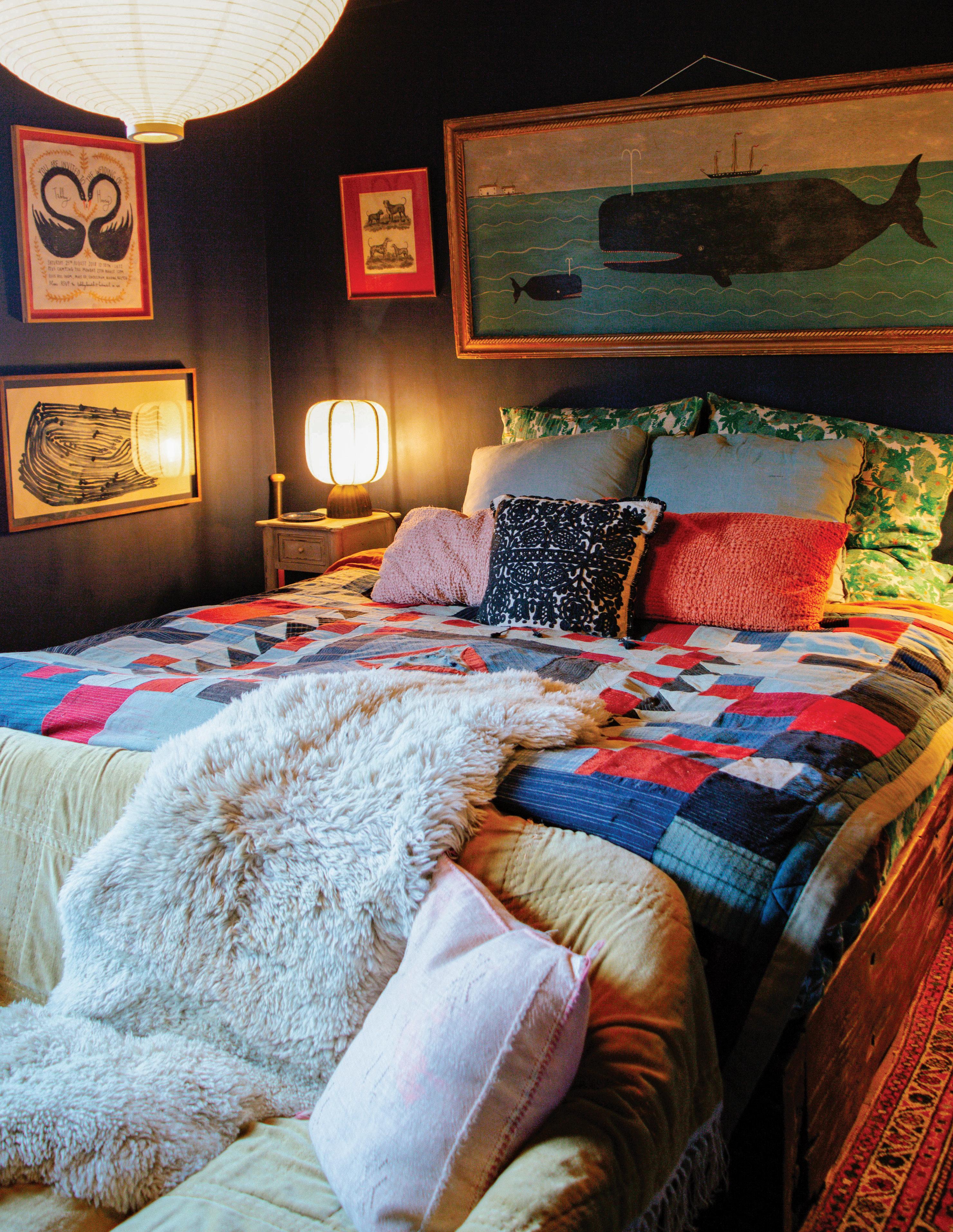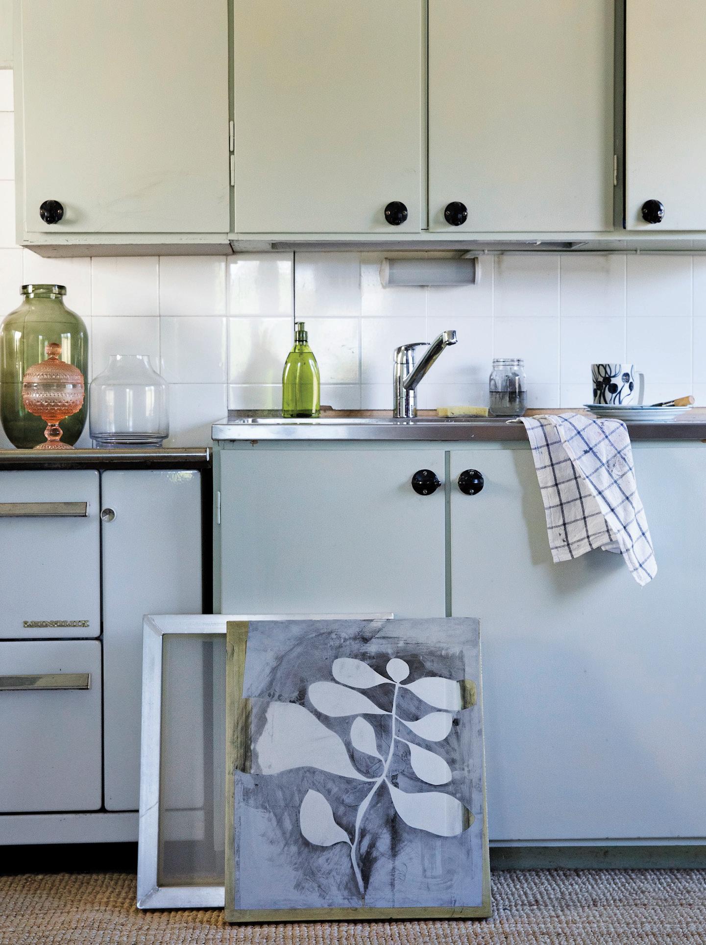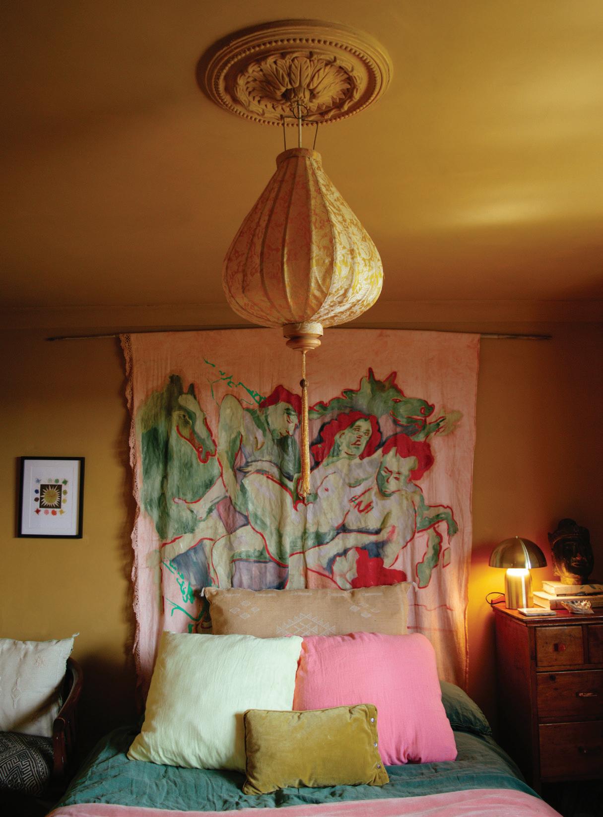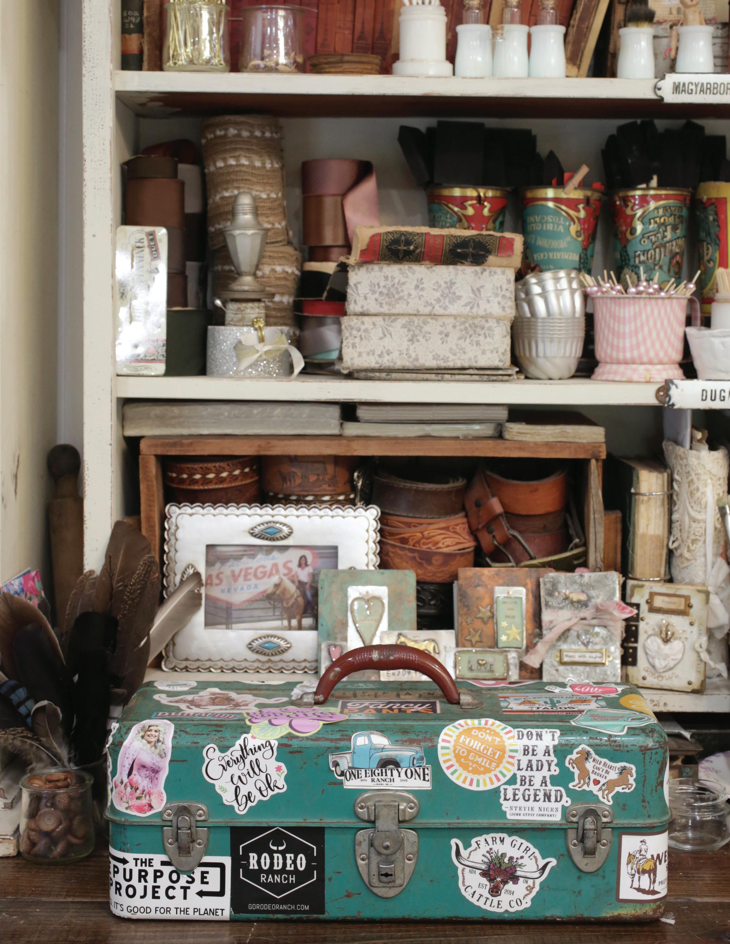 Ilike the idea of not thinking too much about painting. I rarely map anything out ahead of time. The knowing can feel restrictive—the mystery of where things are headed is part of the fun. The unknown ending allows me to paint on a lark. When not in the studio, I am out gathering ideas and vintage finds. I rarely search for
