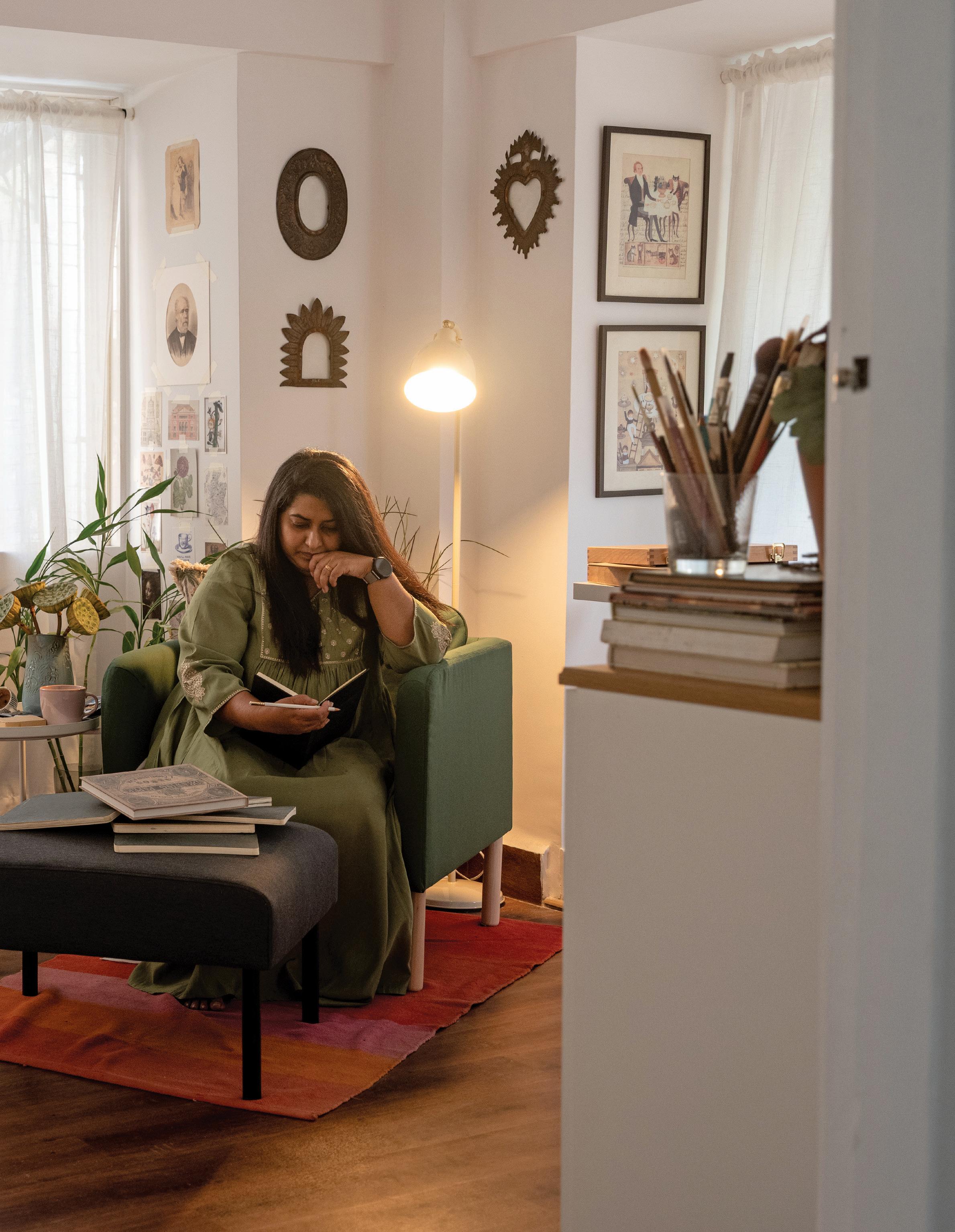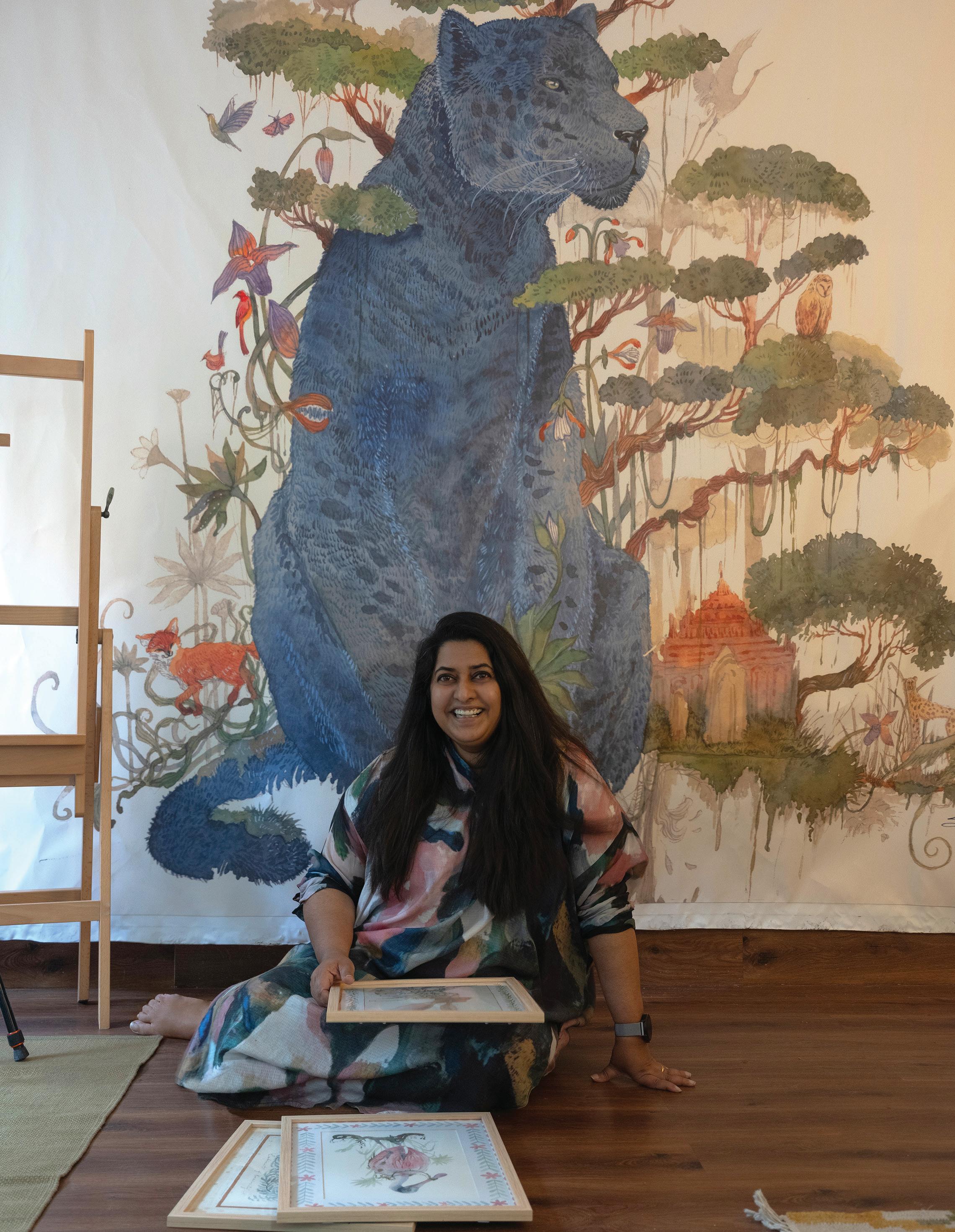 SURI is an artist and communication designer based in Mumbai. After two decades leading her design studio, she rediscovered painting during the stillness of lockdown, transforming a small bedroom corner into the birthplace of her full-time art career. Known for her whimsical natureinspired work, she now creates from her light-filled studio, exploring the magic where imagination, curiosity, and the natural world meet.