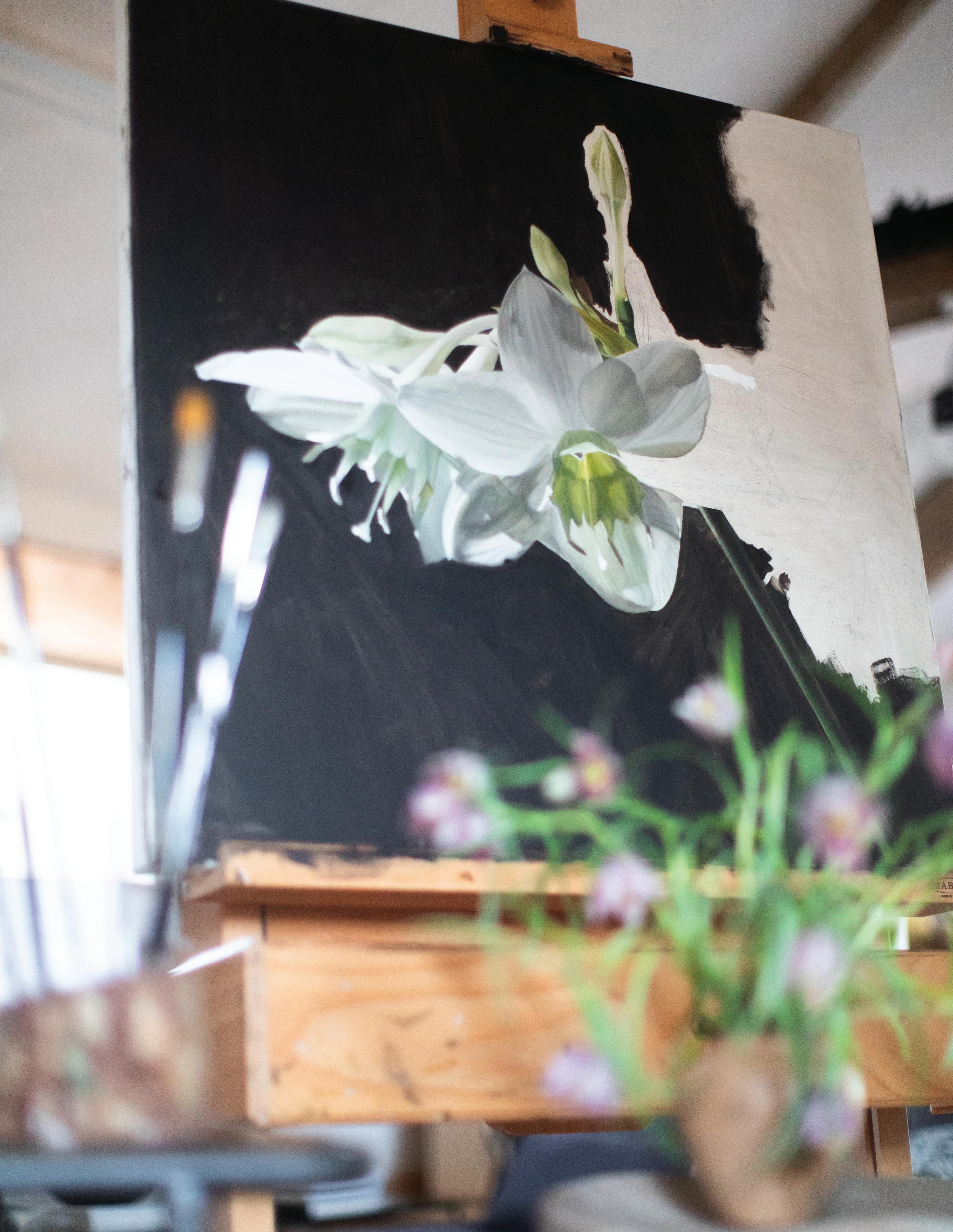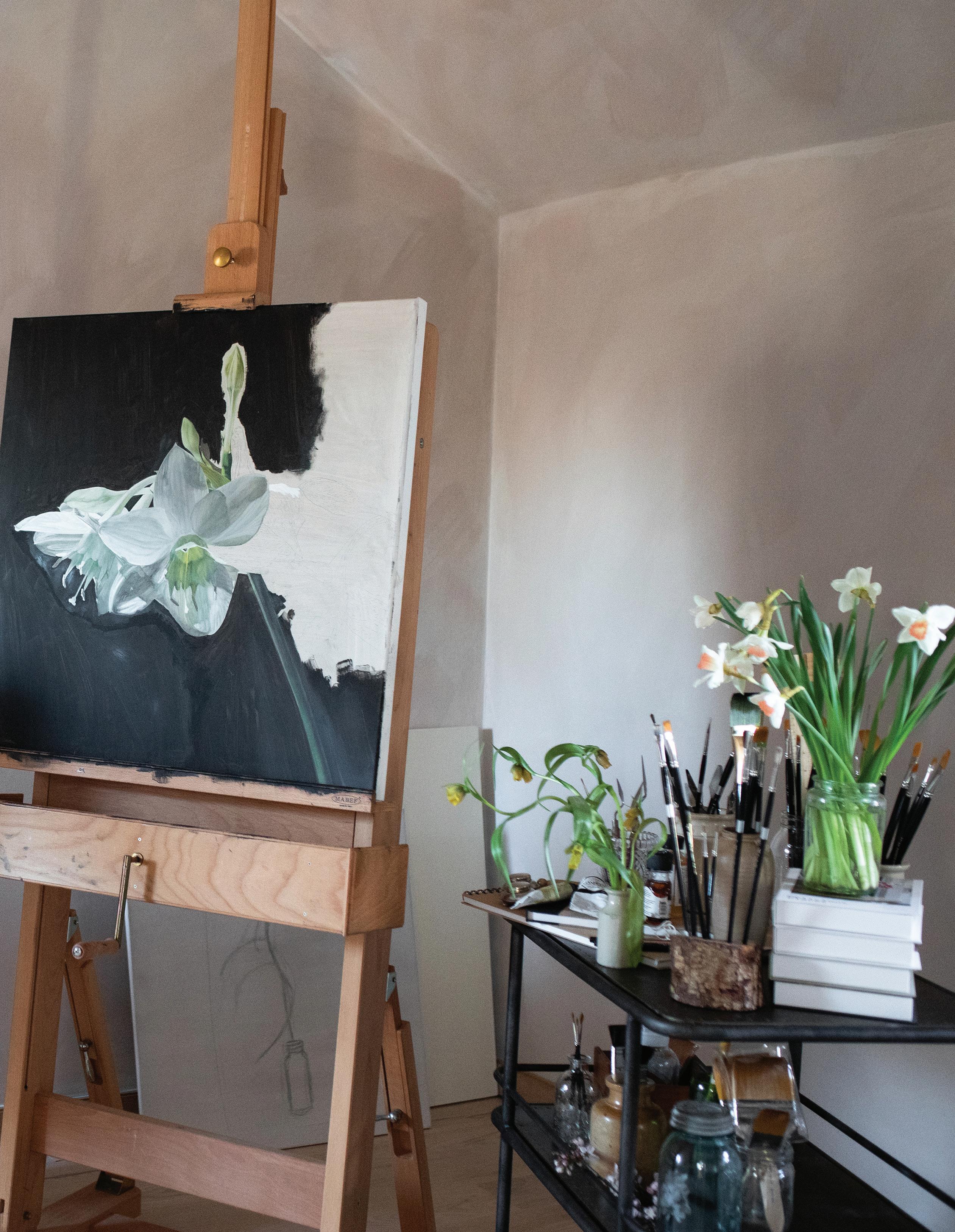 My studio at the moment is a modest, luminous room in our home. It wasn’t designed for painting, but the light was right, and so it became my workspace. The walls are clean and white, the ceiling low, the proportions intimate—a room that quietly asks for focus. Though simple, it has become a sanctuary of sorts: a space where thought, observation, and craft converge. It provides exactly what classical realism requires: consistency, order, and an uninterrupted source of natural light.