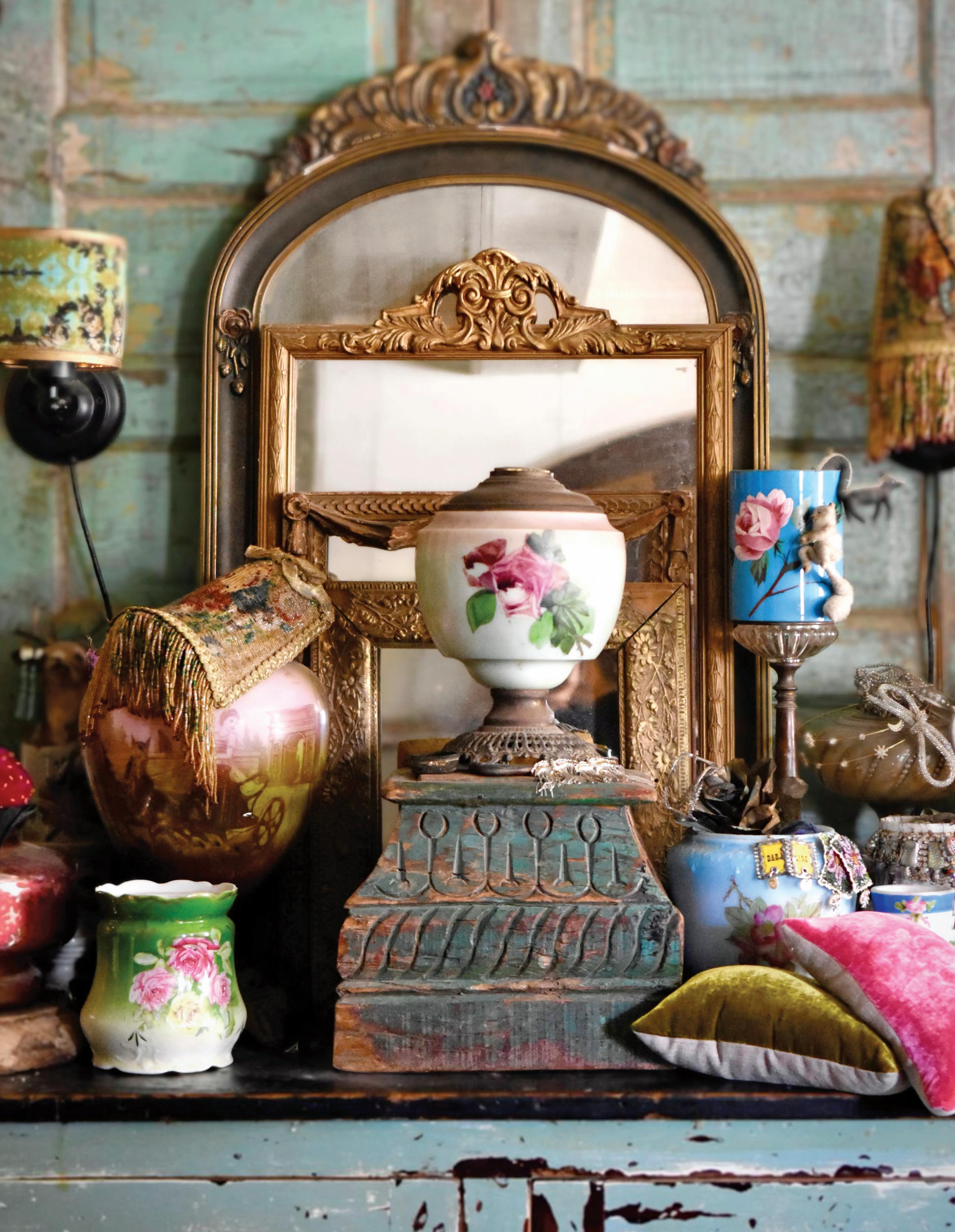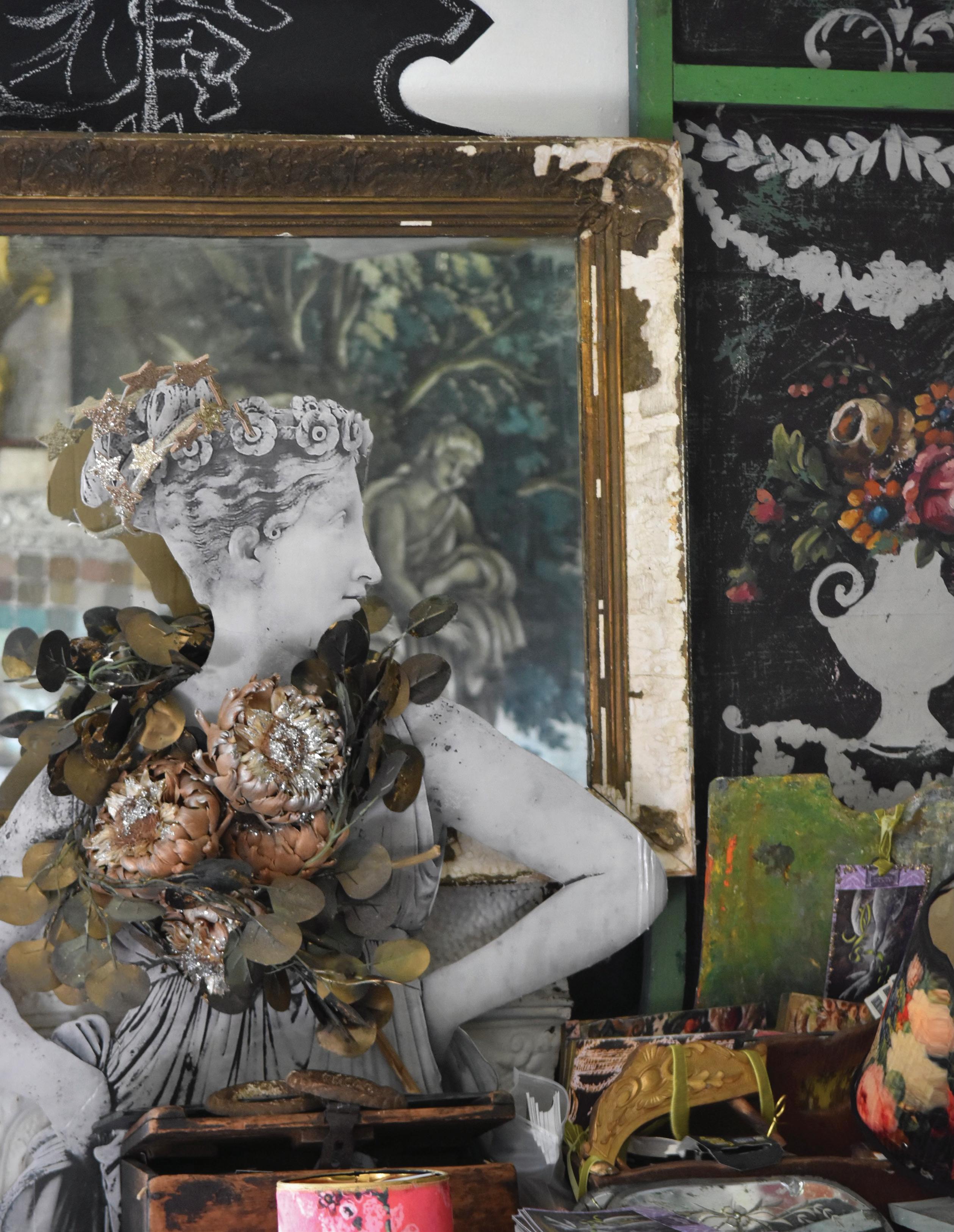 I’ve always been drawn to the collision of contrasts. Refined and gritty. Elegant and odd. There’s something so thrilling about combining a lavish gilded frame with peeling paint or pairing a plush velvet textile with raw linen. The tension creates a story—a scene. Those little vignettes help bring story to my art.