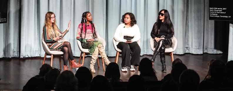 7–8. Panelists Luba Elliott, Damara Inglês, Nyla Hayes, and Krista Kim reflect on technology and gender equity on December 3