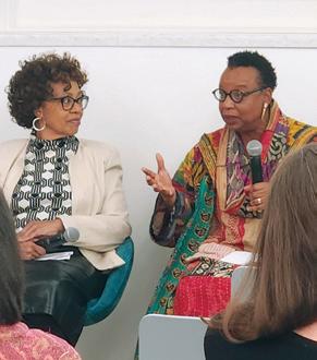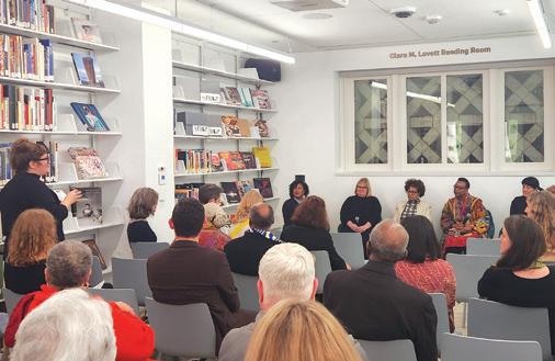 16. Several artists featured in the exhibition Holding Ground spoke in NMWA’s Library and Research Center (LRC), and LRC Director Elizabeth Ajunwa moderated a discussion with book artists Kerry McAleer-Keeler, Adjoa Jackson Burrowes, Ibe’ Crawley, Colette Fu, and María Verónica San Martín on January 25 17. Ibe’ Crawley answers an audience question