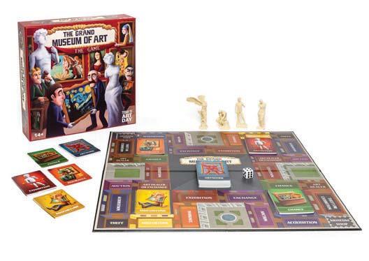 In this board game, collect works of art, curate thematic exhibitions, bid at auctions, steal, make exchanges, and answer trivia questions.